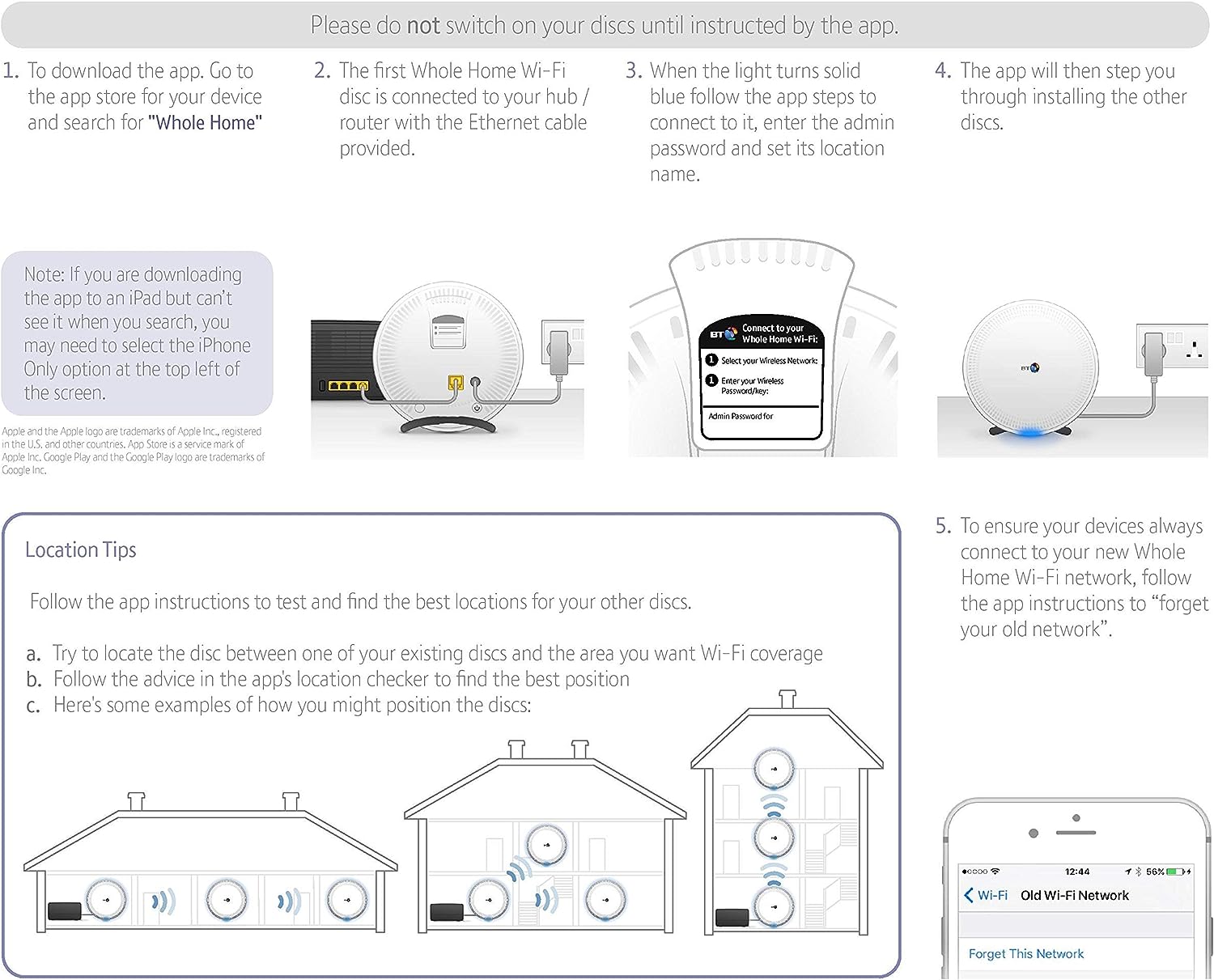 BT Whole Home Wi-Fi, Pack of 3 Discs, Mesh Wi-Fi for seamless, speedy (AC2600) connection, Wi-Fi everywhere in medium to large homes, App for complete control