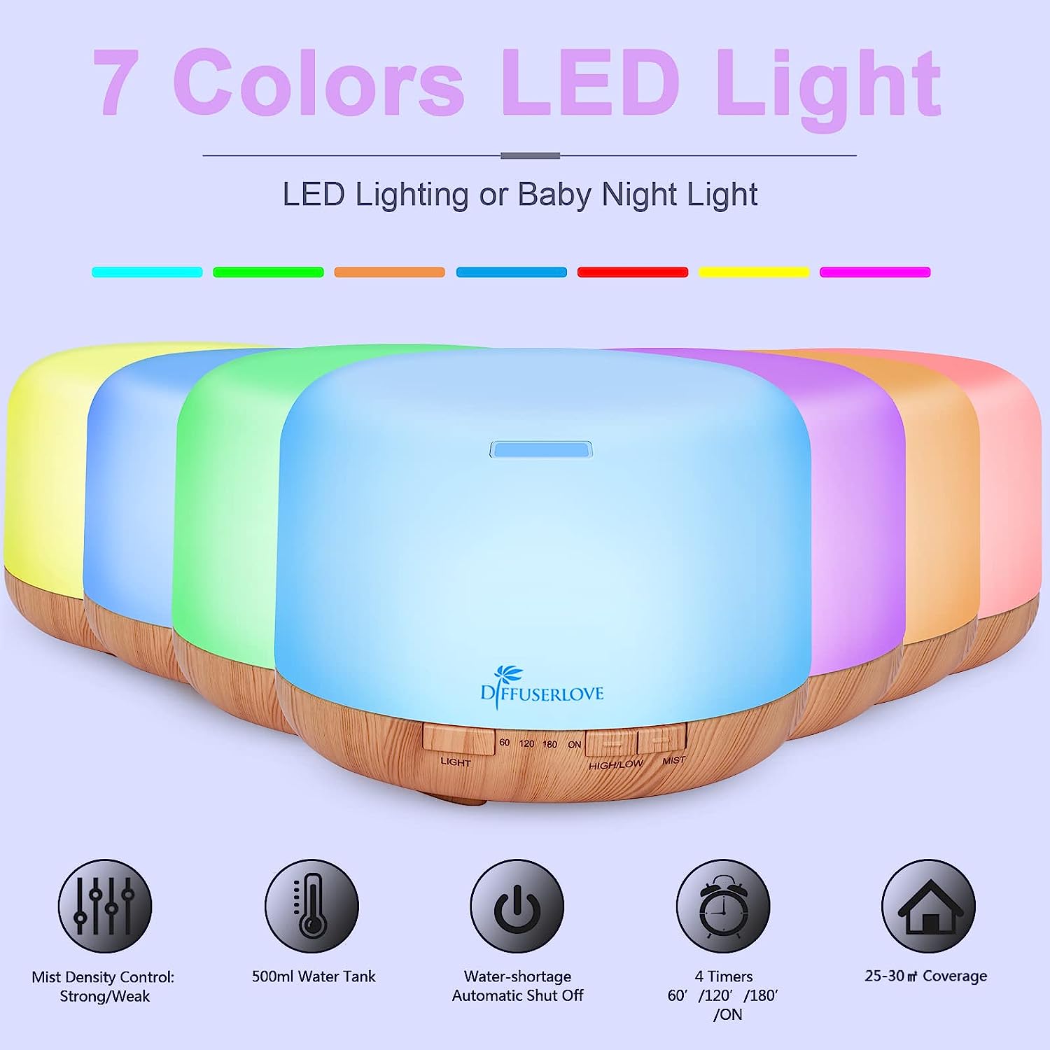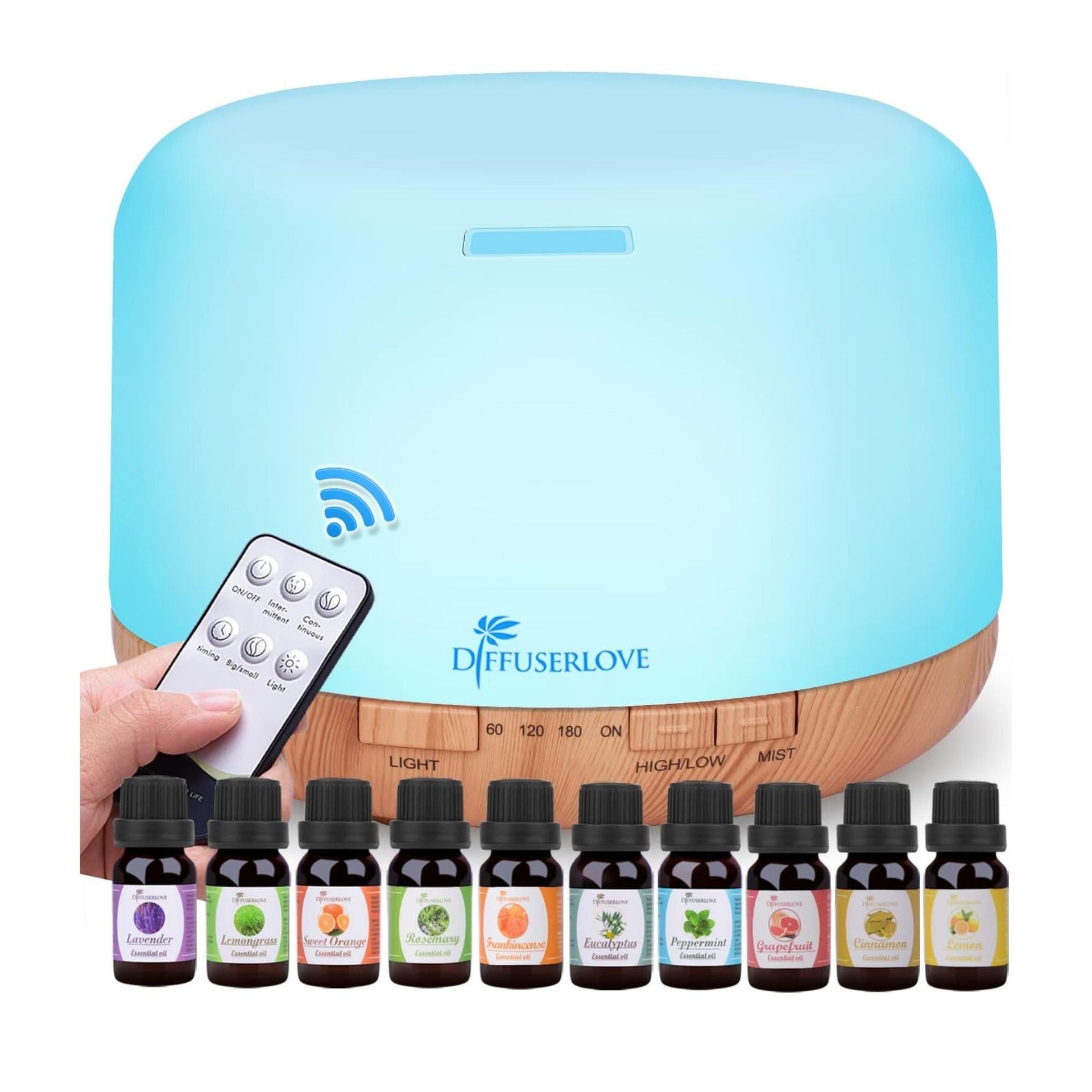 Diffuserlove Diffuser Essential Oil Diffusers 500ML Remote Control Aroma Diffuser Cool Mist Aromatherapy Diffuser with Mute Design, Timer and Auto Shut-Off for Office Living Room