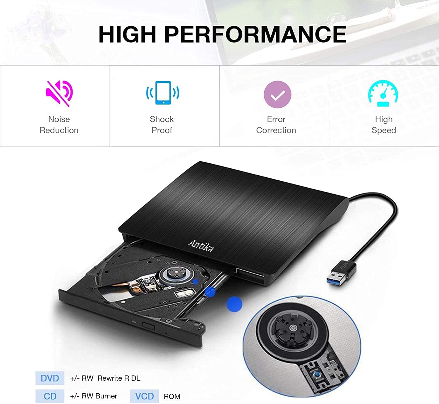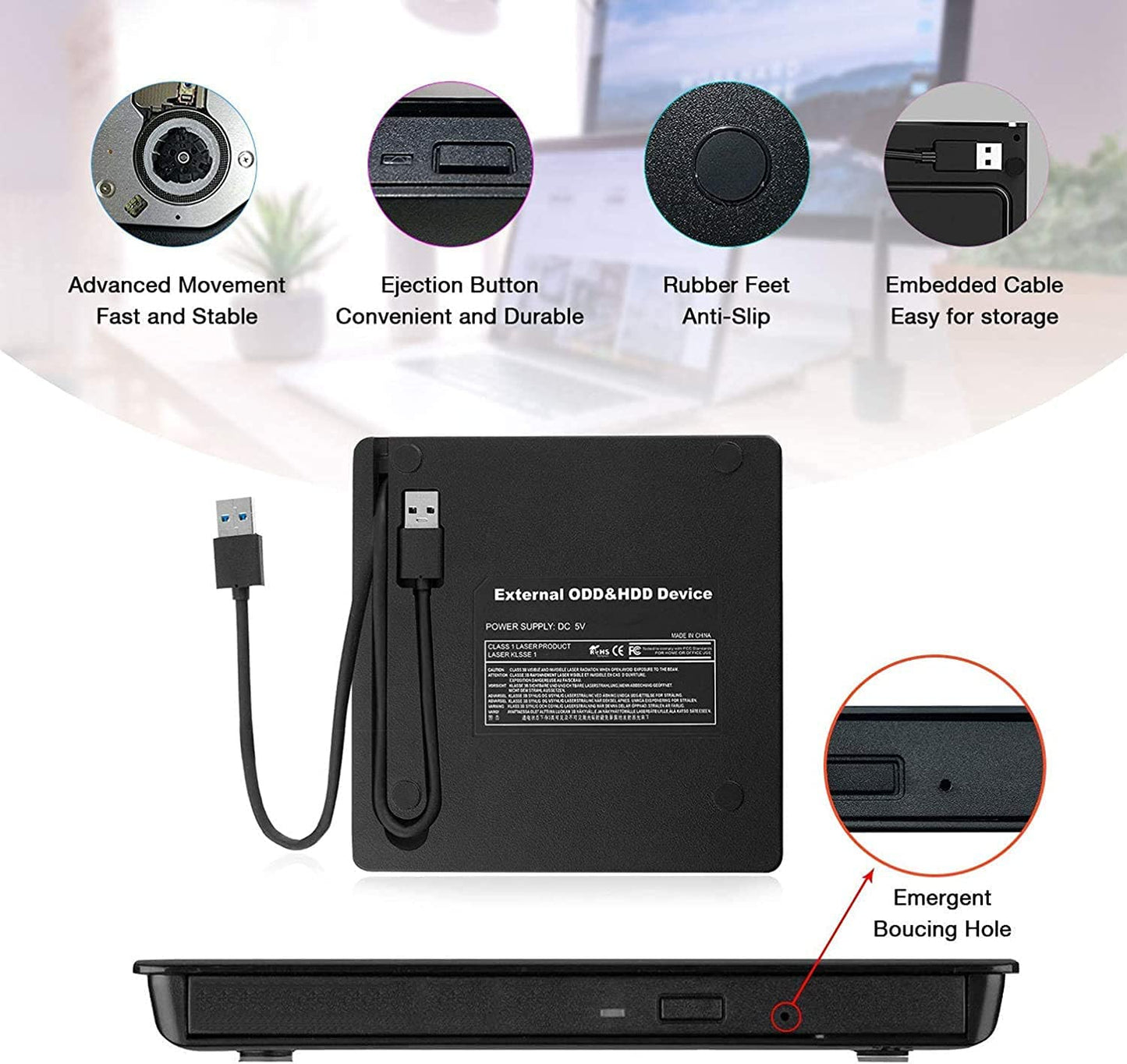 - External CD Drive USB 3.0 Portable Slim External DVD Drive CD DVD +/-RW ROM Burner Writer/Player for MacBook Pro Laptop/Desktops Win 11/10/7/8