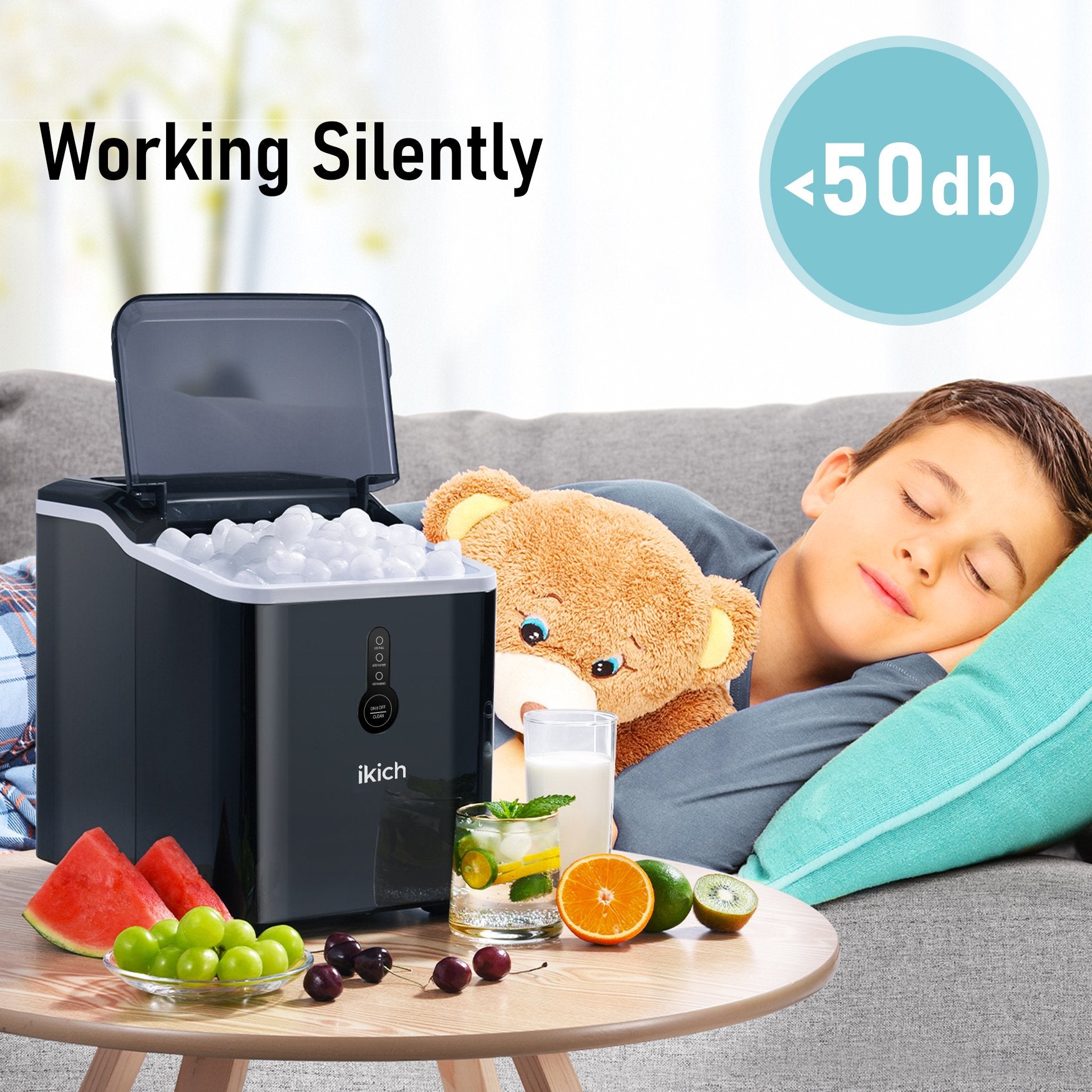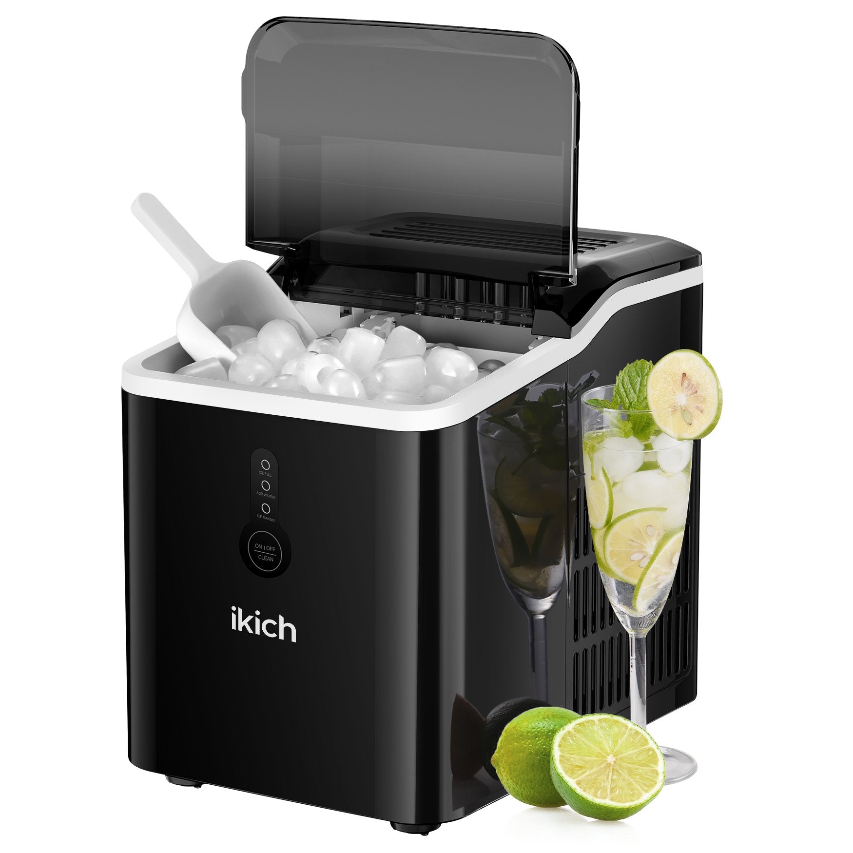 Ikich Portable Countertop Ice Maker with Self-Cleaning/LED Display/Scoop Basket, 26Lbs in 24 hours, 9 Ice Cubes Ready in 7 Mins, Including Scoop and Removable Basket, Perfect for Home/Bar/RV/Party