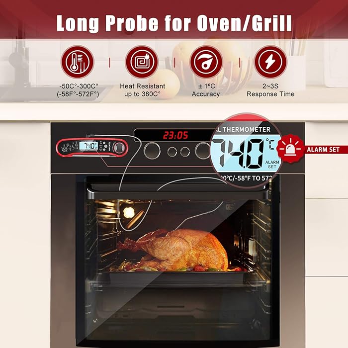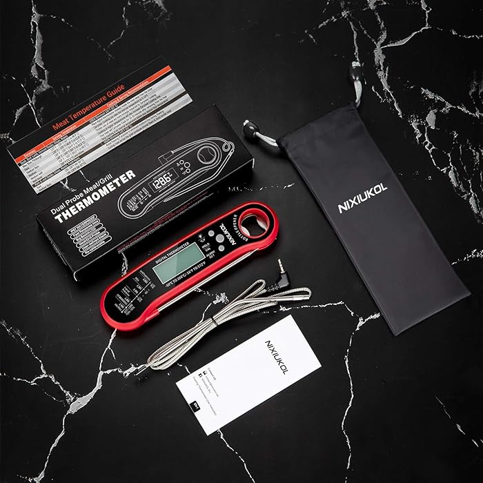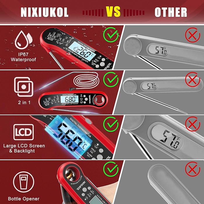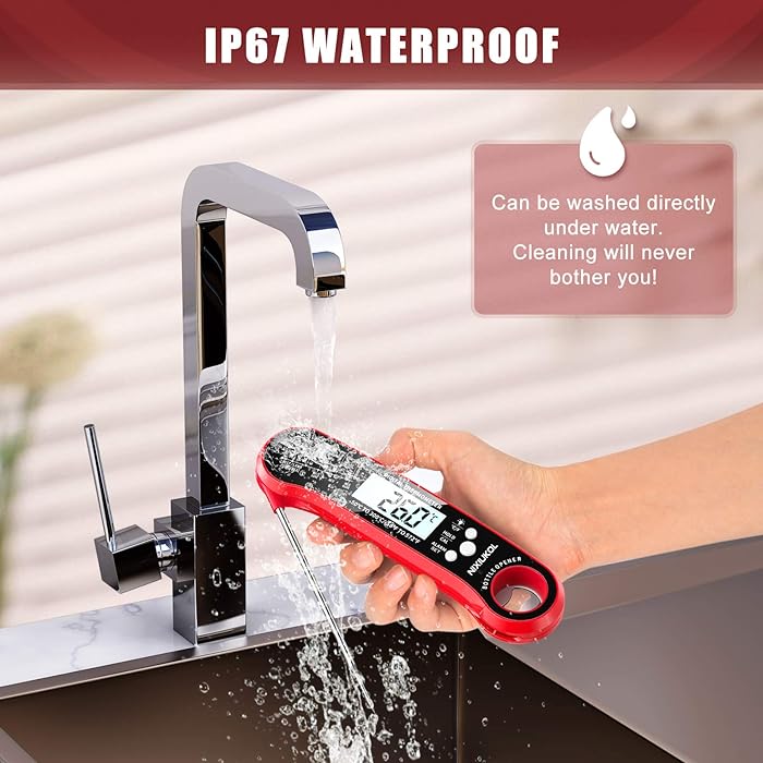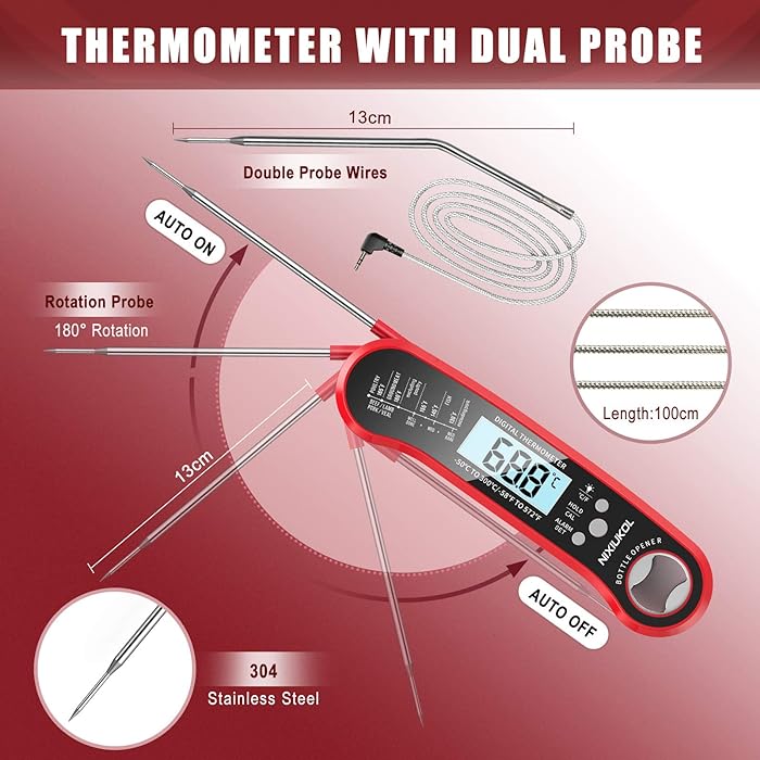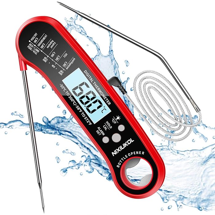 NIXIUKOL 2 in 1 Digital Cooking Thermometer, IP67 Waterproof Meat Thermometer with Instant Read, Temperature Alarm, Backlight LCD, Food Thermometer Perfect for Kitchen BBQ Grill Oven Milk