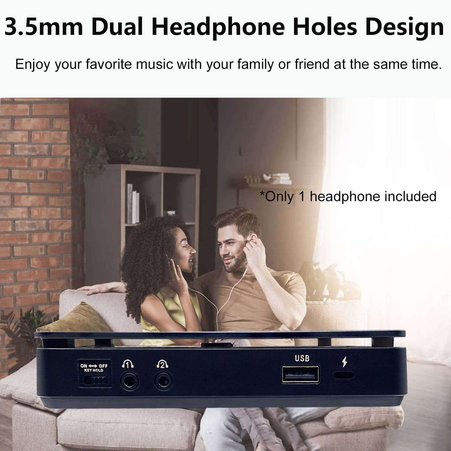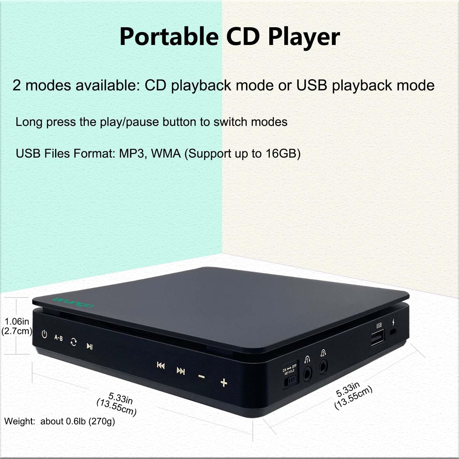 Rechargeable Portable CD Player Small CD Player for Car with 3.5mm AUX Cable Dual Headphones Hole Design LED Display Touch Buttons 12 Hours Playing Time Anti-Skip Shockproof