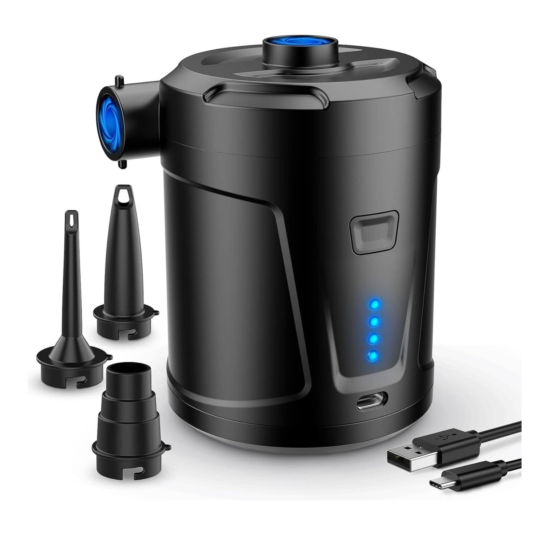 SUPPOU Electric Air Pump, 5200mAh Portable Air Pump with Fast Inflating/Deflating, Rechargeable Electric Pump with 4 Nozzles for Kids Paddling Pool, Swimming Pool, Airbed, Inflatable Boat