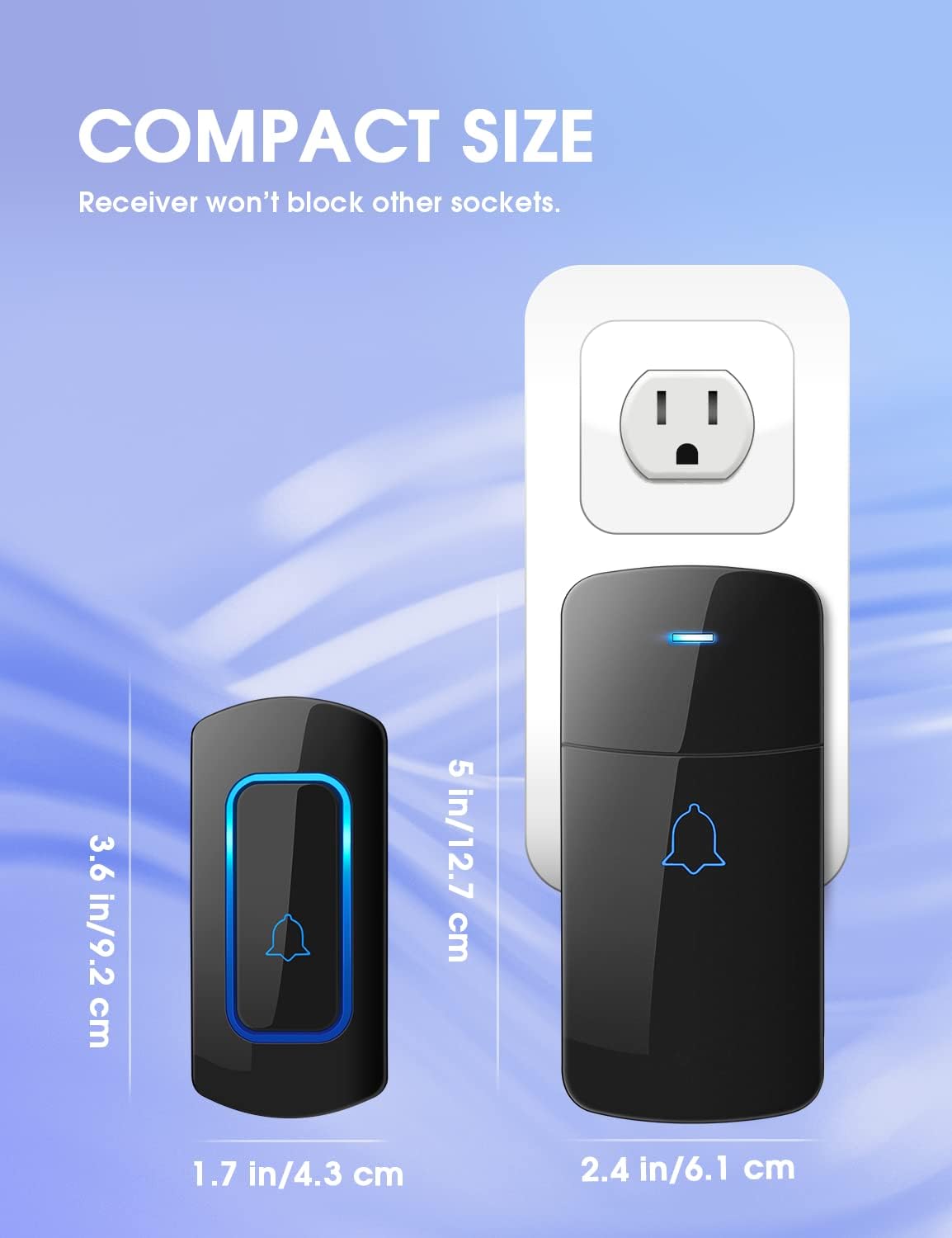 - Wireless Doorbell Kit, Door Bell Operating at Over 1300 Feet, Waterproof Door Chime Kit with Two Plug-in Receivers, LED Indicators, 52 Melodies, Easy Setup for Home and Office