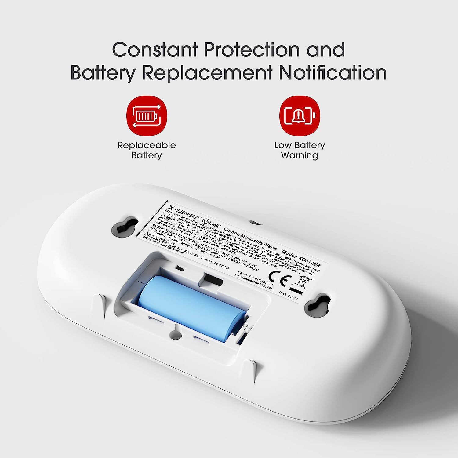 X-Sense Wireless Interconnected Carbon Monoxide Detector, Replaceable Battery Powered CO Alarm with Digital Display and Peak Value Memory, XC01-WR