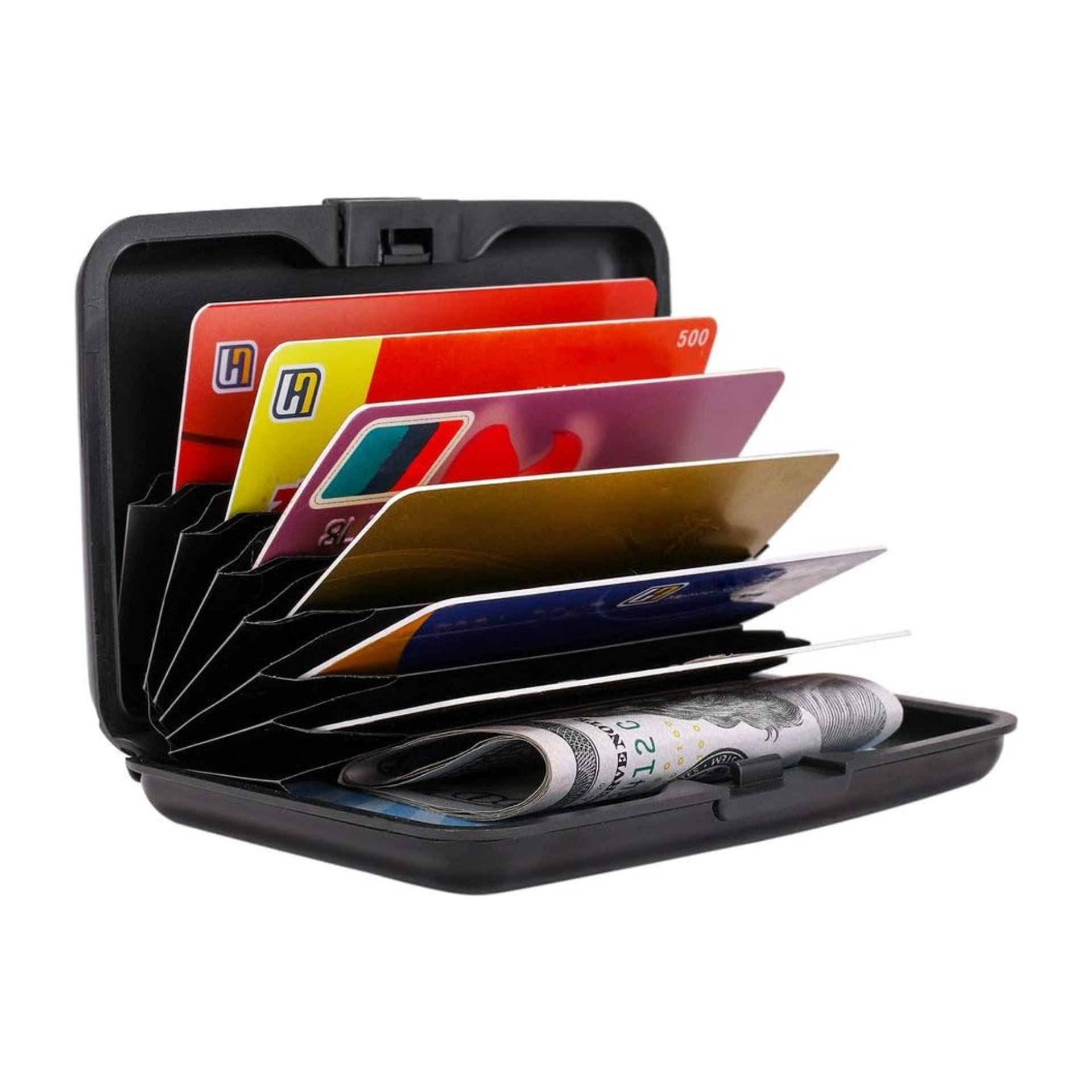 Mini RFID Aluminum Wallet Credit Cards Holder Business Card Case Metal ID Case for Men Women (Black)