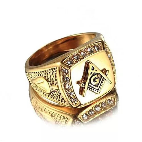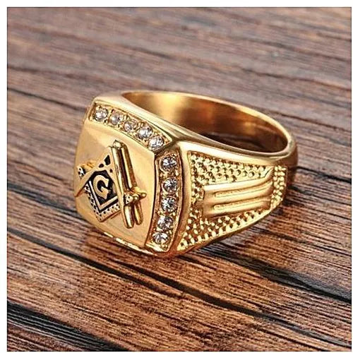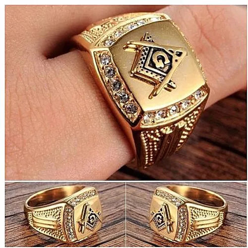 18K Gold Stainless steel freemason ring cz diamond ring Men Gold Masonic ring Wedding and Engagement Jewellery