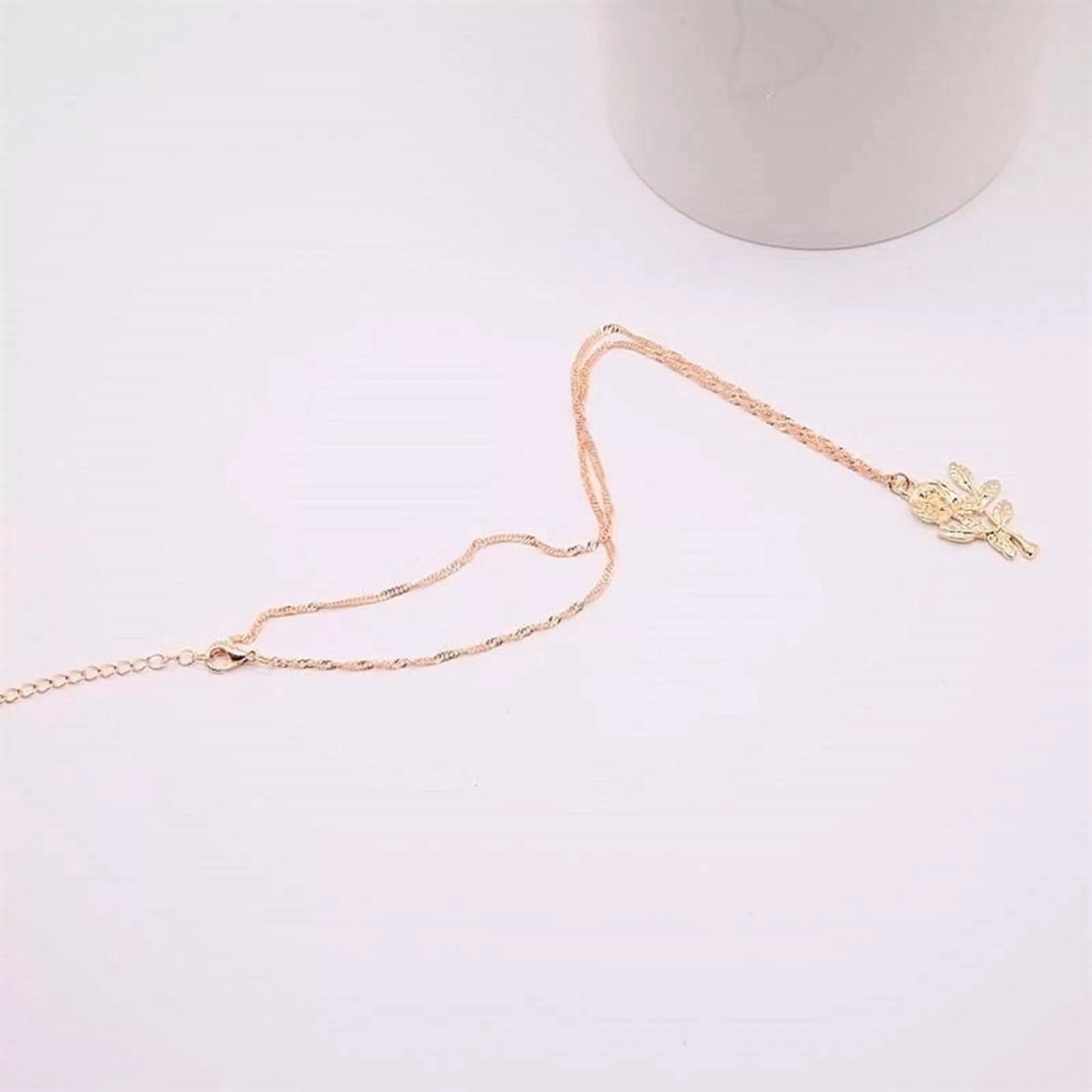 Fresh Rose Flower Plant Pendant Charm Gold Necklace Chain - Women