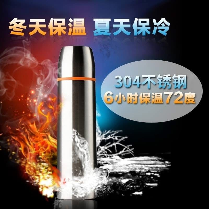 High Grade Vacuum Flask 350ml Hot and Cold Water Bottle with Push-Down Lid Double Walled Stainless Steel Bottle for Travel, Home, Office, School, Picnic, Steel Thermos 0.35L