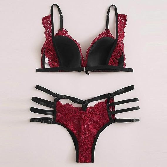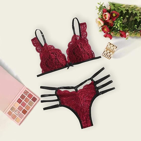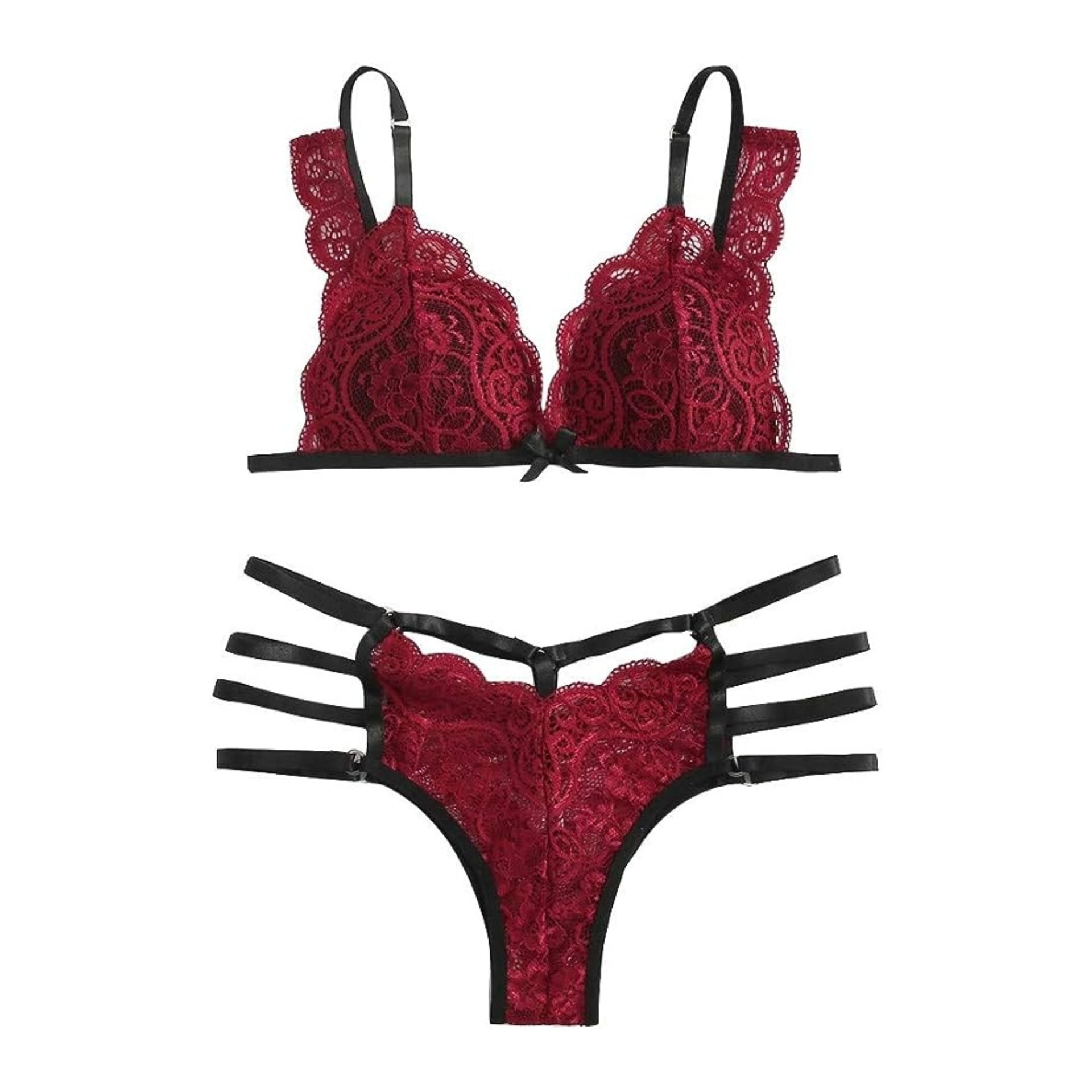 Lingerie Lace Babydoll 2 Piece Sexy Bra and Panty Sets G-String Lingerie Thong Underwear Bra Sexy Sleepwear Flower Lace