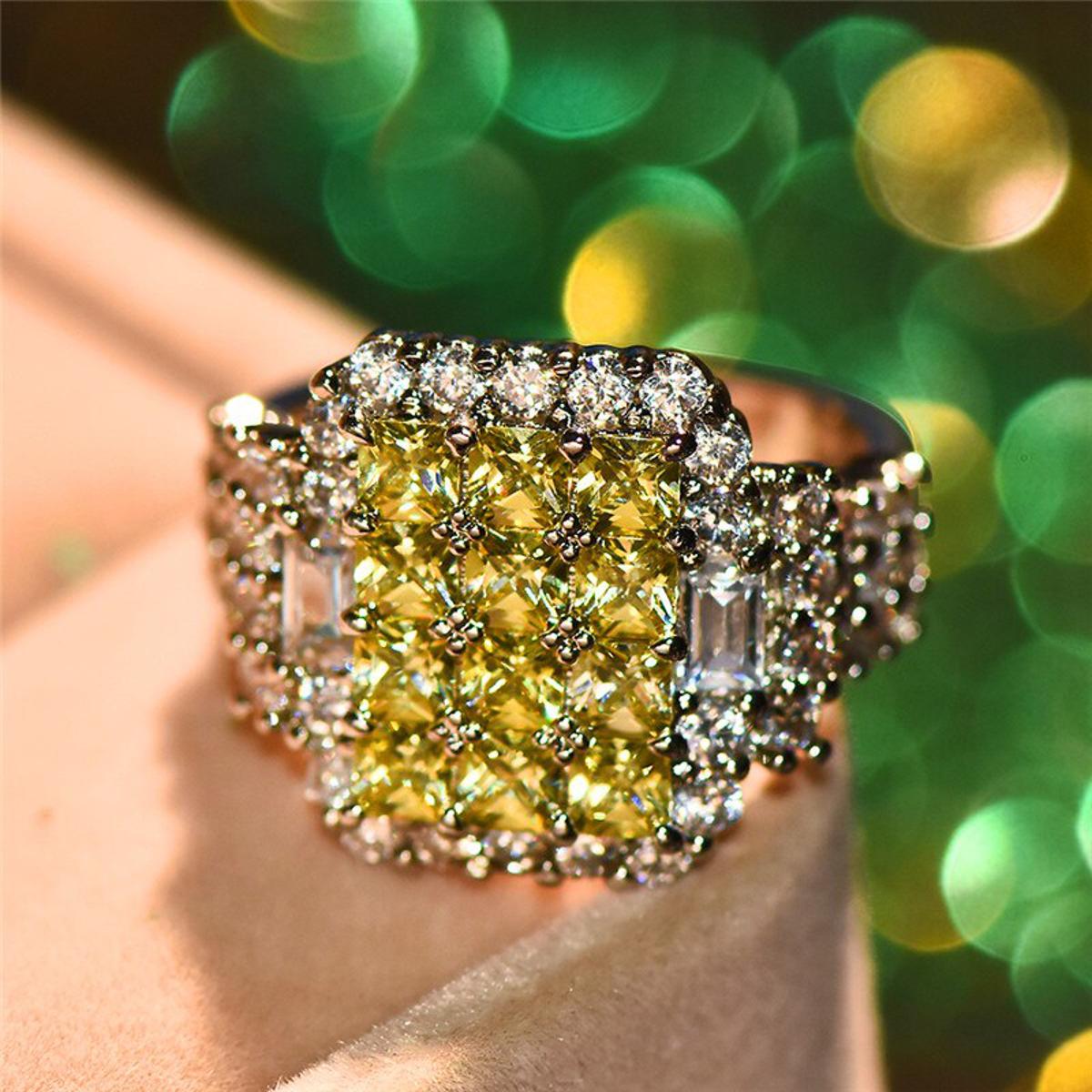 Female Crystal Yellow Stone Ring Brilliant White Gold Filled Promise Engagement Rings For Women