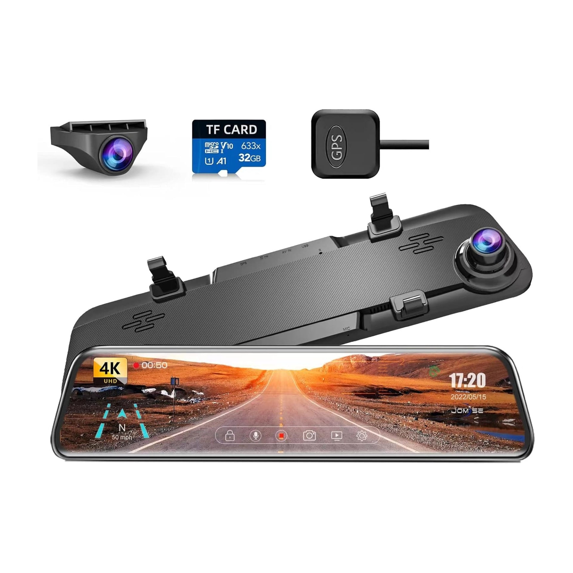 - 👆【4K 12'' IPS Full Touch Screen Multimedia Streaming】 K17 Mirror Dashcam offers 4K UDH front and rear cameras, allowing the capture of any road conditions and license plate details. Comes with 12" super responsive IPS touch screen display, which helps reduce contrast and causes less stress on your eyes. It allows you to view the recorded video easily and to look at the rearview of your car clearly even on a sunny day.