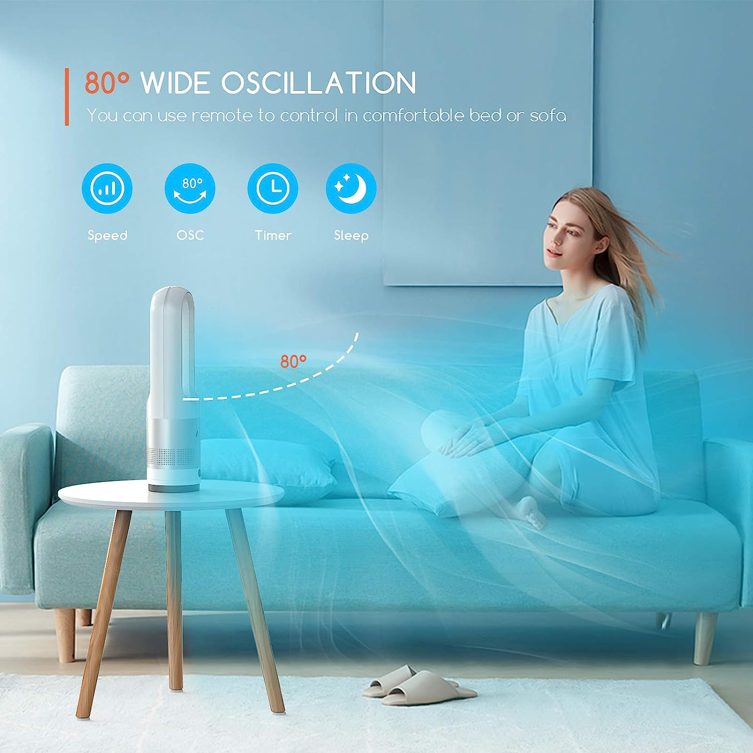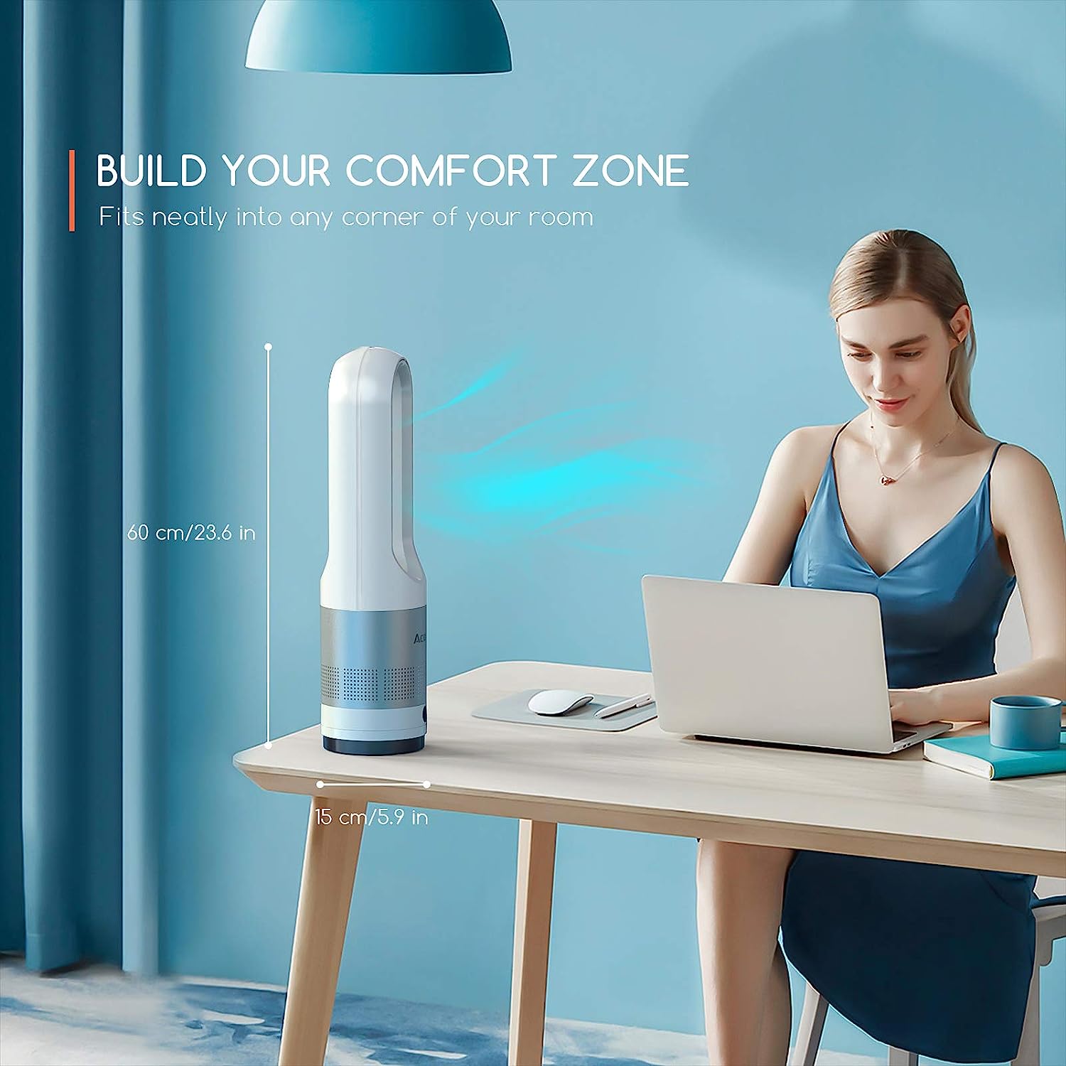 - Acoolir Table Fan, Quiet, Low-Noise Oscillating Tower Fan with 8 Speed Levels and Adjustable Turbo Fan, 8 Hour Timer with Remote Control (White)