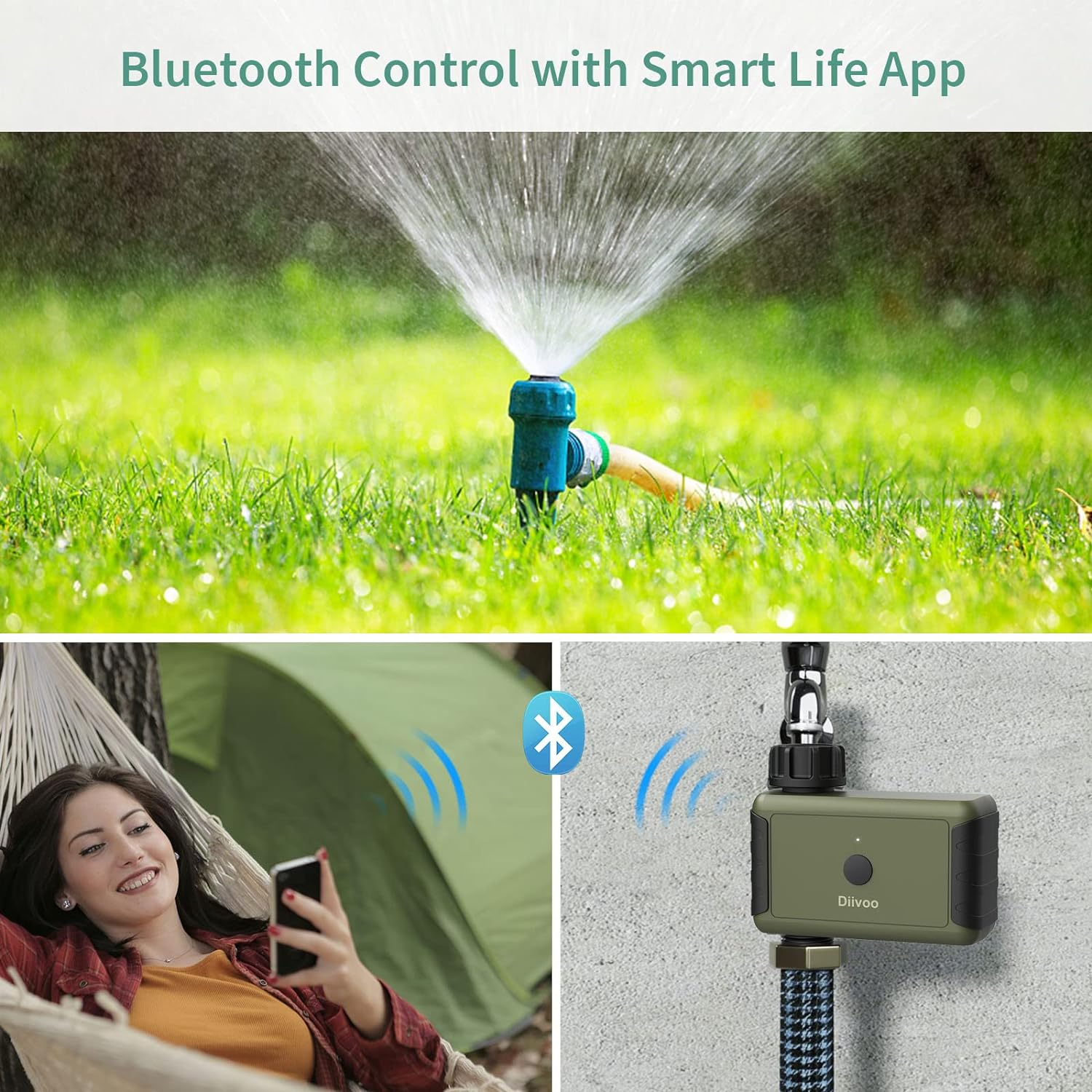 DIIVOO Bluetooth Water Timer for Garden Hose, Diivoo Smart Sprinkler Irrigation Timer with Timing, Frequency, Duration and Rain Delay for Outdoor Garden Lawn Pool Watering