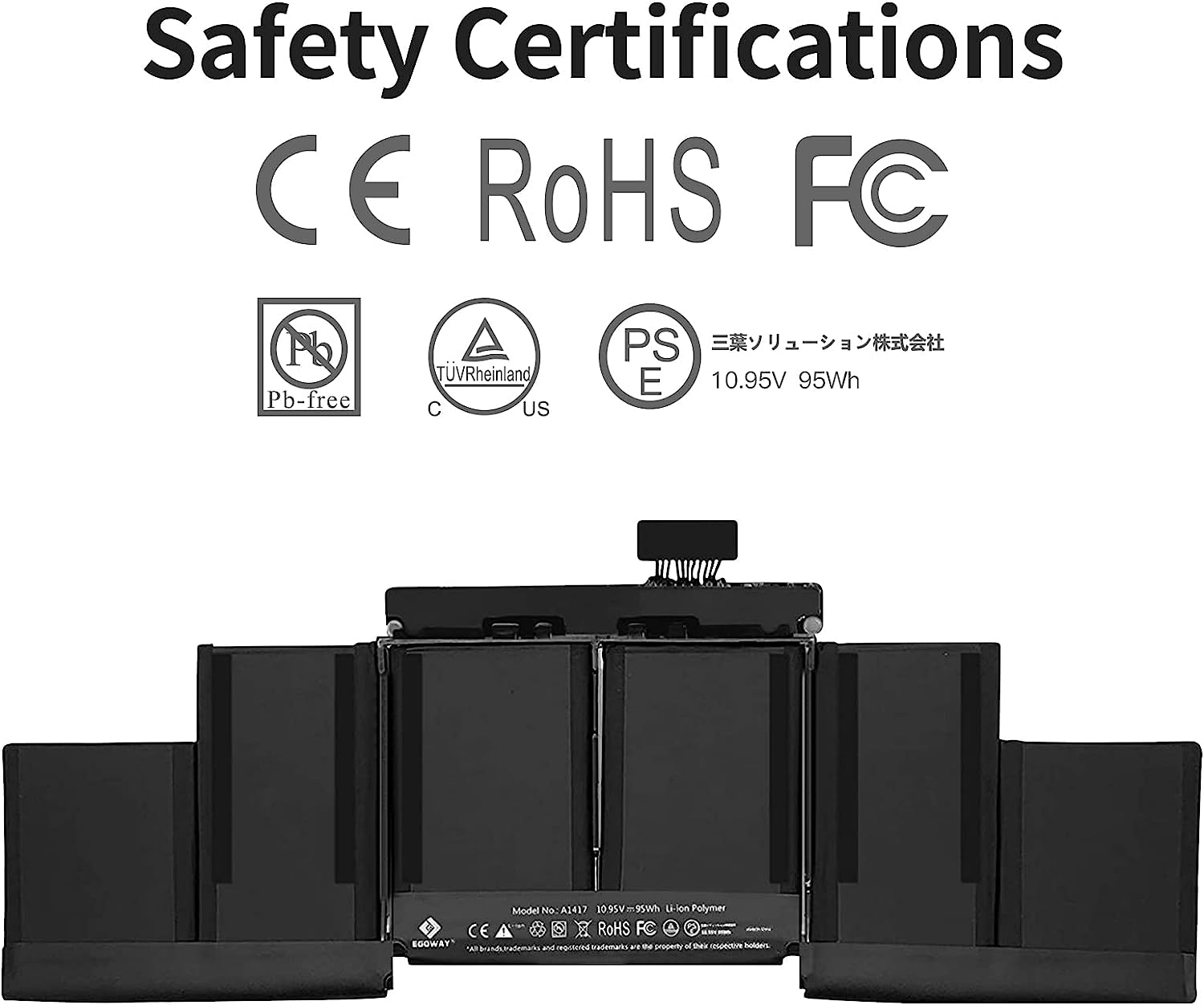 - E EGOWAY A1417 Laptop Battery Replacement Compatible with MacBook Pro 15 inch Retina A1398 Mid 2012 Early 2013, fits ME665LL/A ME664LL/A MC976LL/A MC975LL/A