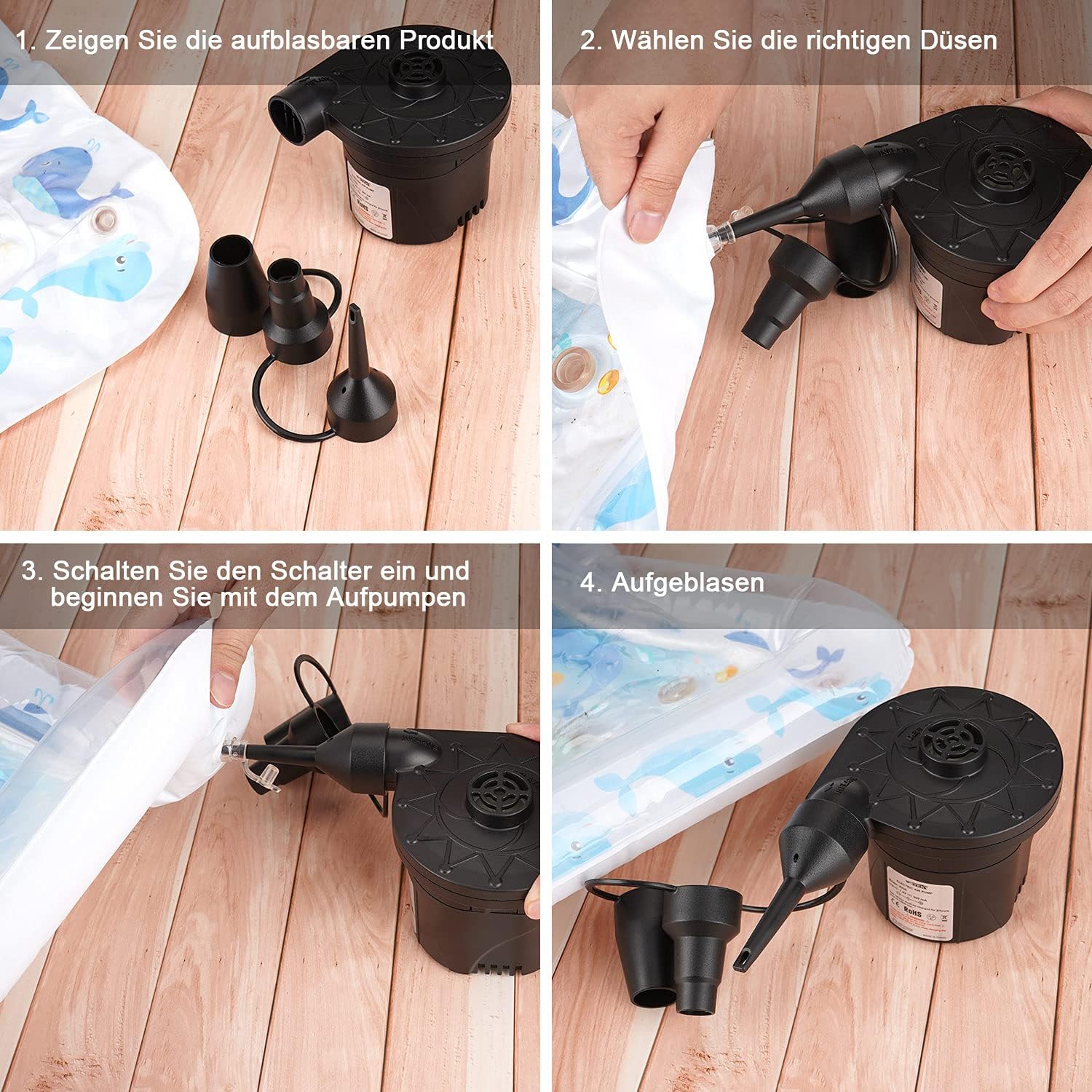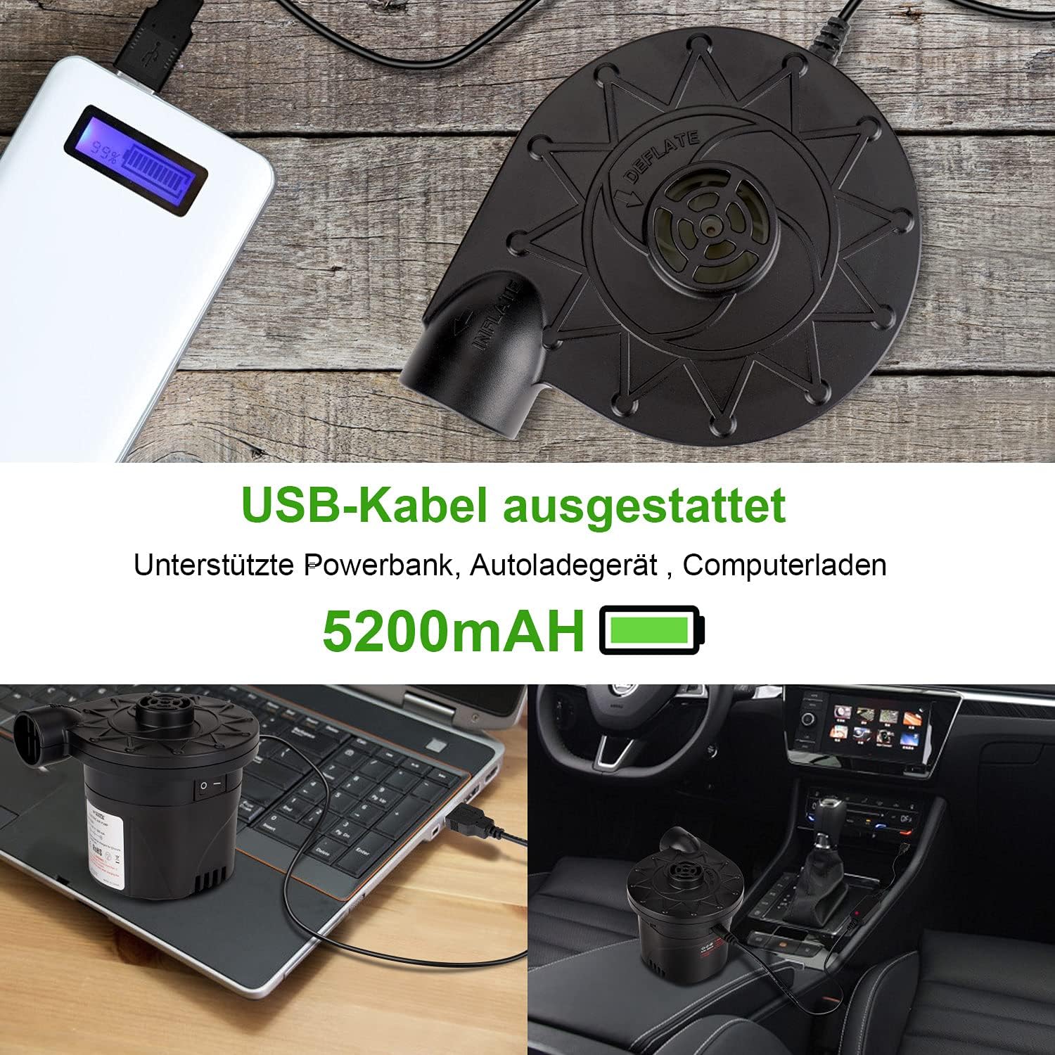 - Electric Air Pump, Quick-Fill USB Rechargeable Electric Pumps for Airbed Mattress Paddling Swimming Pools Inflated Toy, Portable & Lightweight Inflator/Delator with 3 Nozzles AC100-240V & DC12V/60W