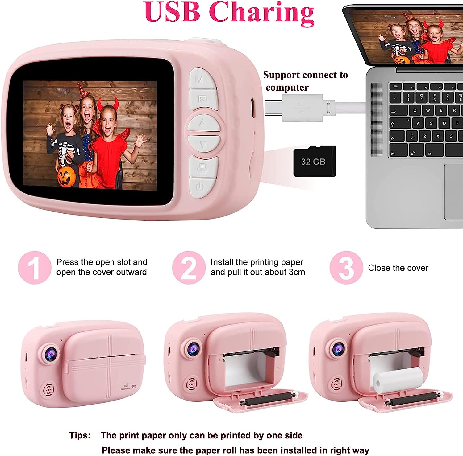 Instant print cameras quickly and automatically print, No more waiting for photos to develop,lets kids revel in the joy of photography with instant printing. Ink free printing & BPA-free photo paper, skin-friendly and easy to replace.