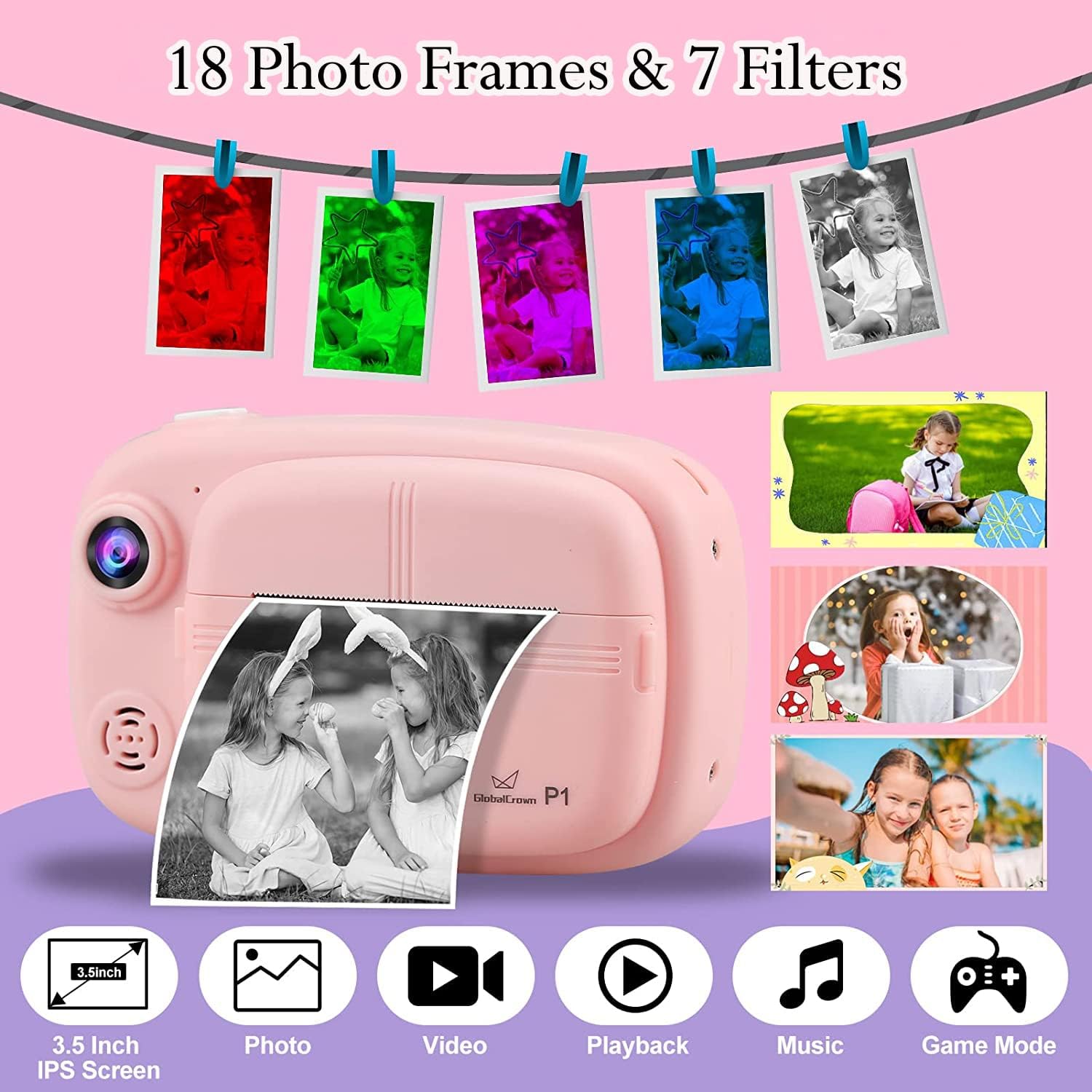 GlobalCrown Kids Instant Print Camera quickly and automatically print.