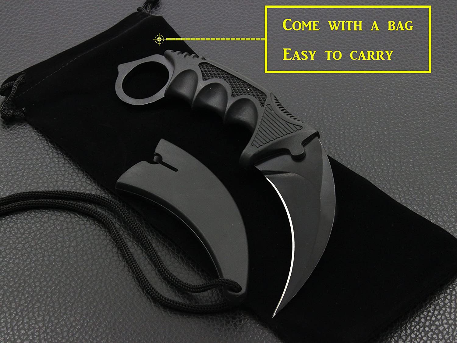 HOSANA Karambit Knife Stainless Steel Fixed Blade Tactical Knife with Sheath and Cord Nice Knife for Hunting Camping Fishing and Field Survival (Black)