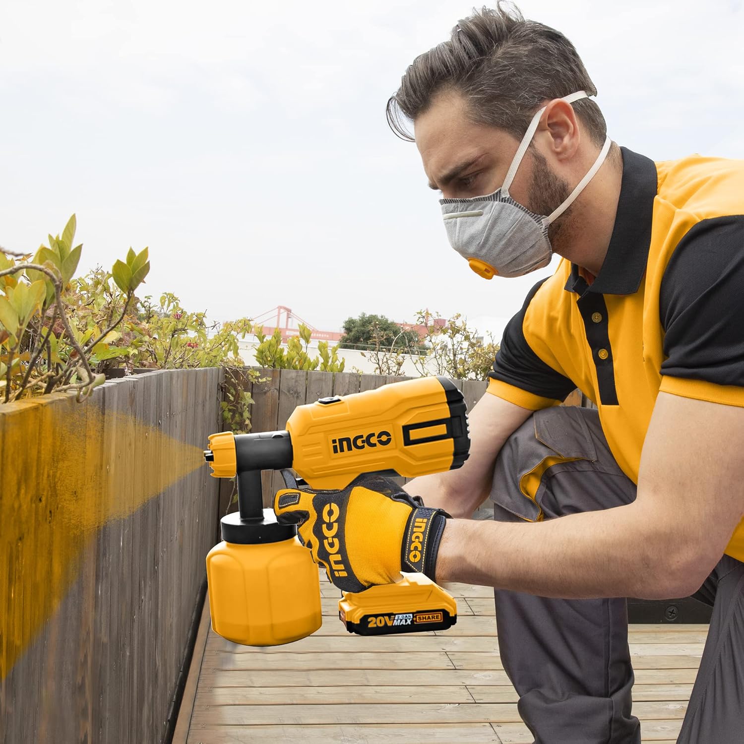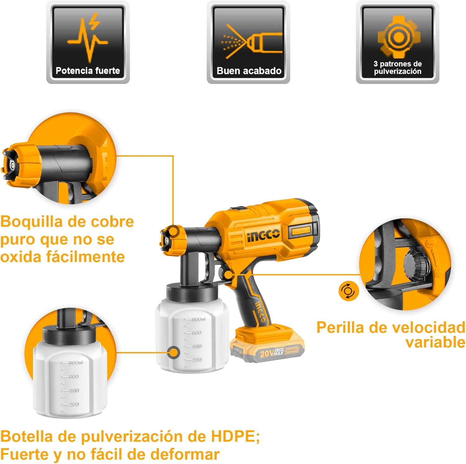 INGCO CSGLI2001 Cordless Lithium-Ion Paint Gun for Walls, Ceilings and Fences 800 ml 40DIN-s 20 V (without Battery or Charger)