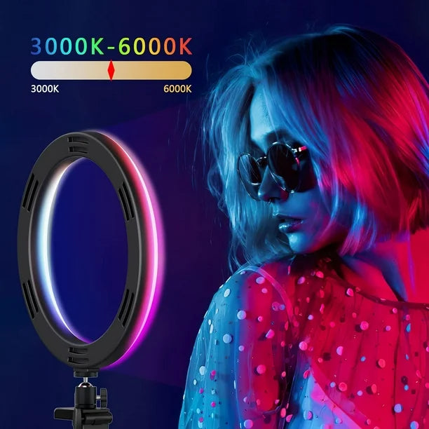PEYOU Selfie Ring Light with 2 Tripod Stand, Upgraded 26 RGB Colors 10 Brightness Levels, 10" Ring Light with 50"
