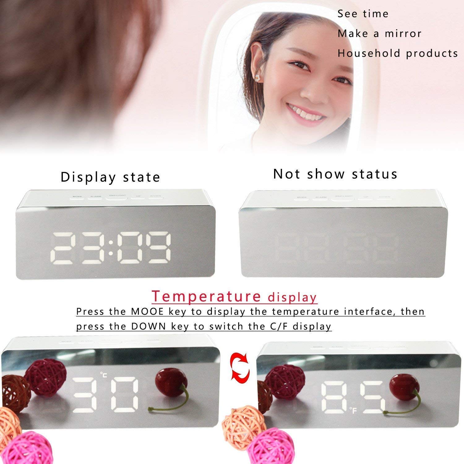- Multifunction Digital Clock: The LED alarm clock designed as mirror style. With large digital display, integrate time display, alarm, snooze, temperature display, night mode and mirror<br>