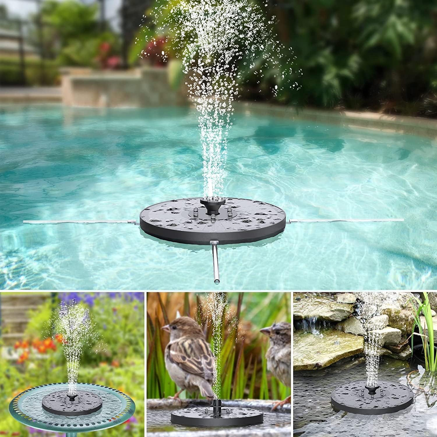 Solar Fountain Pump Floating Solar Water Fountains Pump Built-in Battery Backup with 8 Nozzles for Bird Bath, Fish Tank, Small Pond, Pool, will build a relaxing atmosphere for your garden