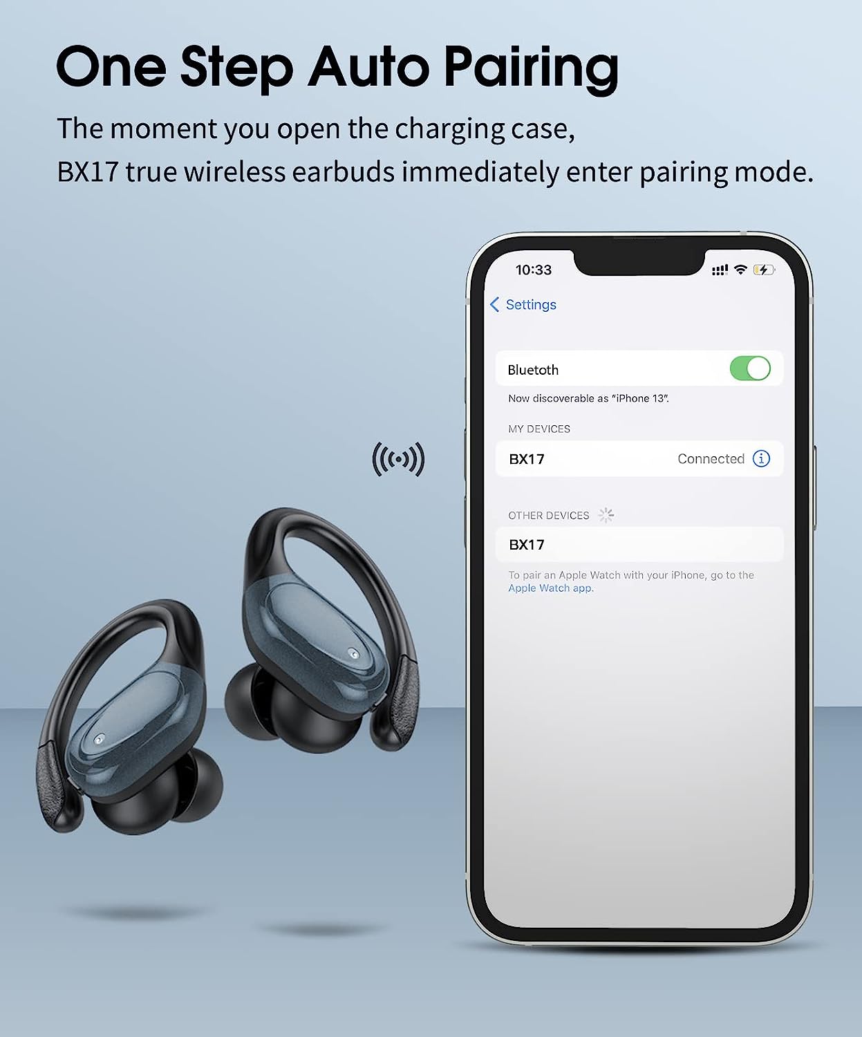 - Tiksounds Wireless Earbuds, Bluetooth 5.3 Headphones, Bluetooth Earbuds with LED Display, 60 Hrs of Playtime, IPX7 Waterproof, Stereo Sound, Over Ear Earphones with Mic for Sports Running Workout Gym