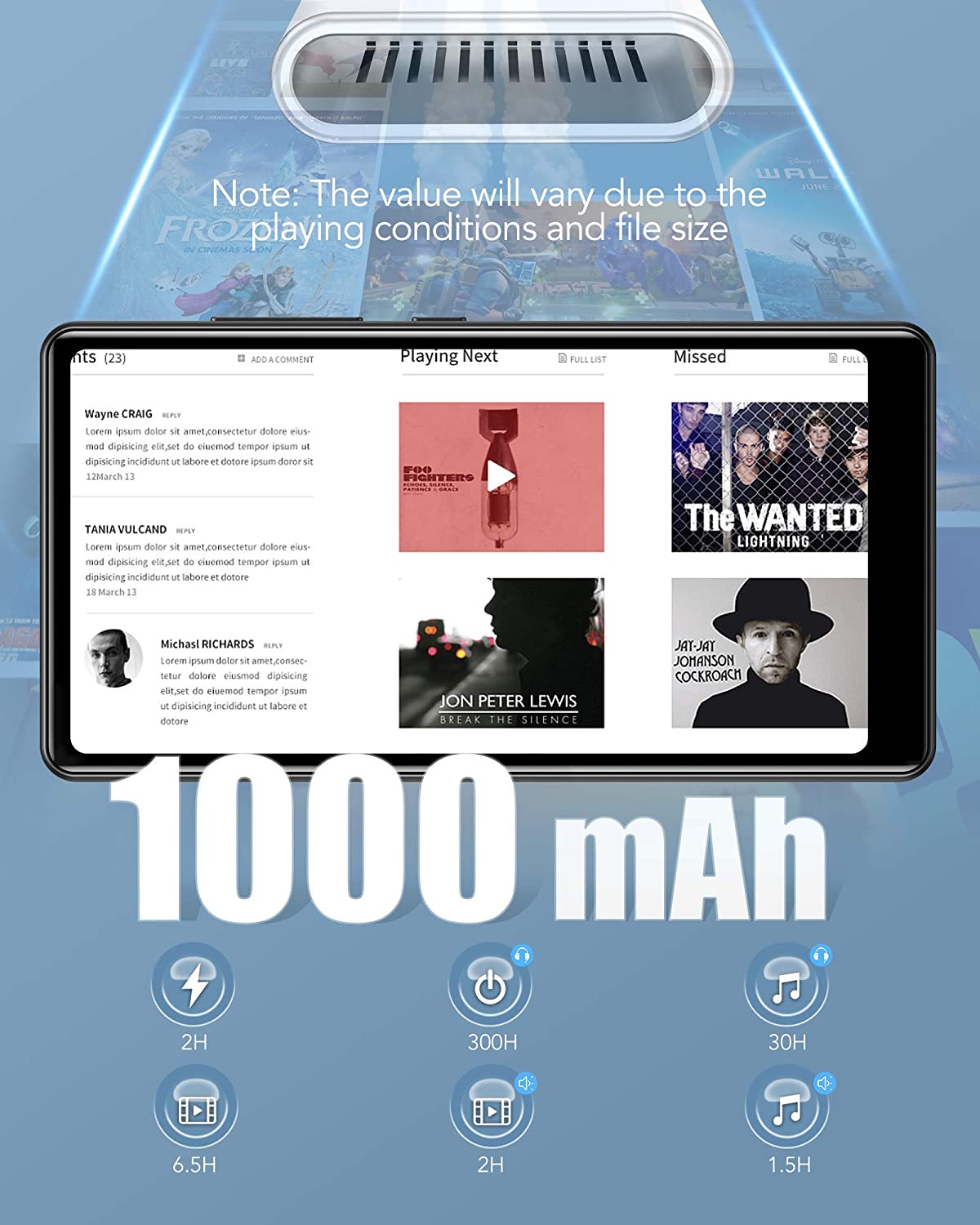 - 【Enjoy Your Music Without Limits】Love music? Built-in 1GB RAM and 8GB ROM, and the additional TF card slot lets you add a up to 32GB TF card, so you will never run out of music. 30 Hours of music playtime with 2 hours charging time, perfect for the daily commute or just being out and about.