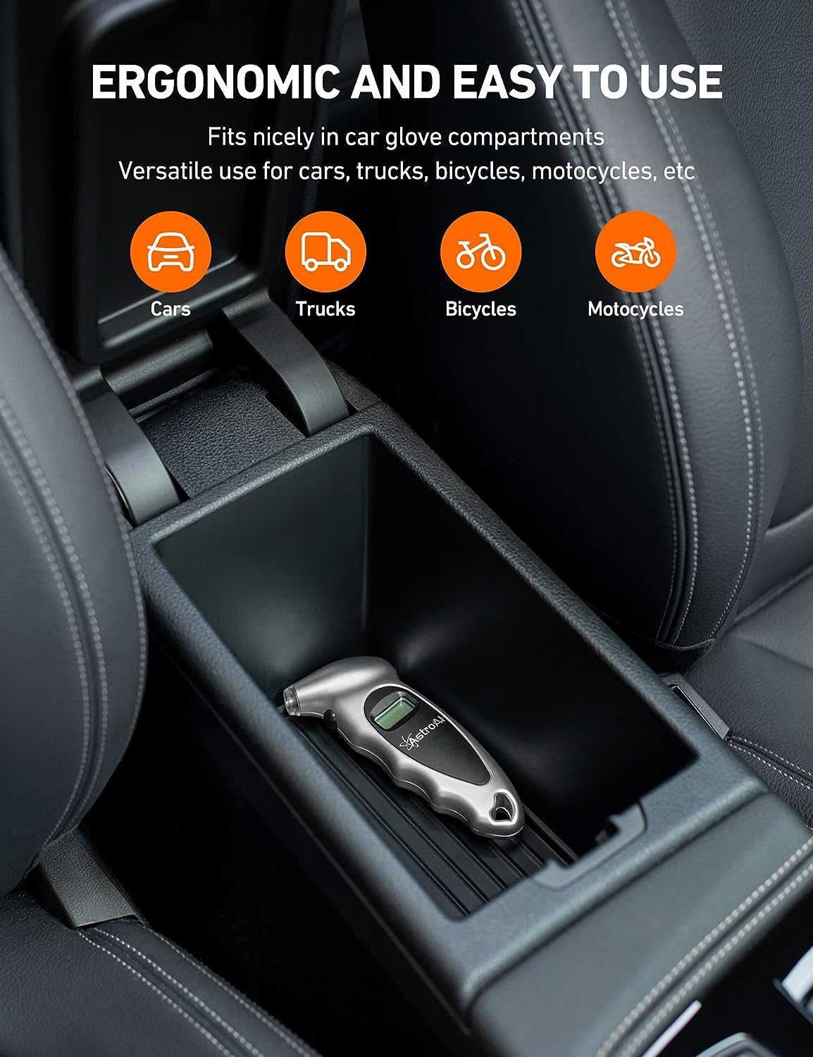 AstroAI Digital Tire Pressure Gauge 150 PSI 4 Settings for Car Truck Bicycle with Backlight LCD and Non-Skid Grip Car Accessories, Silver (1 Pack)