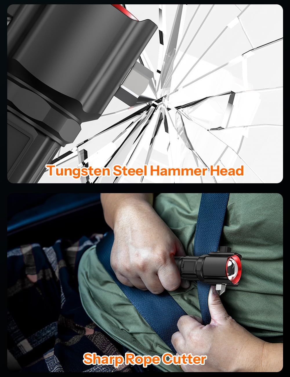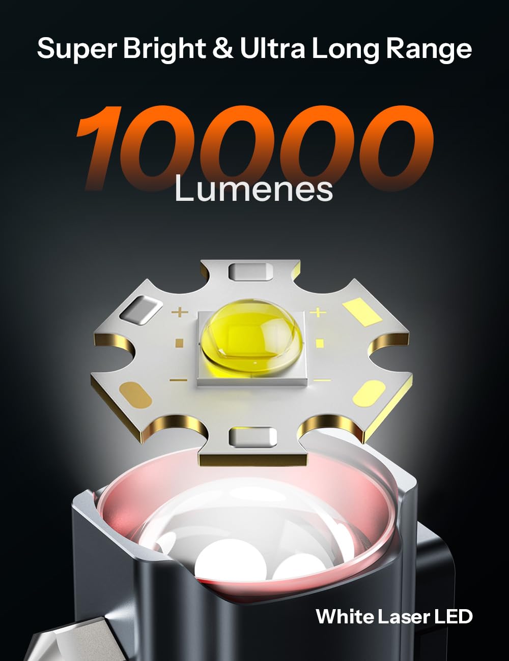 Rechargeable Torch Light High Power, 10000 Lumens Flashlight with 5 Light Modes, Side Light, Adjustable Focus Torch Lights Rechargeable, Window Breaker and Cutter, IP45, Aluminum Alloy, Black