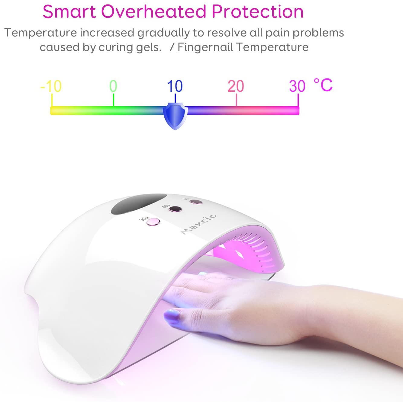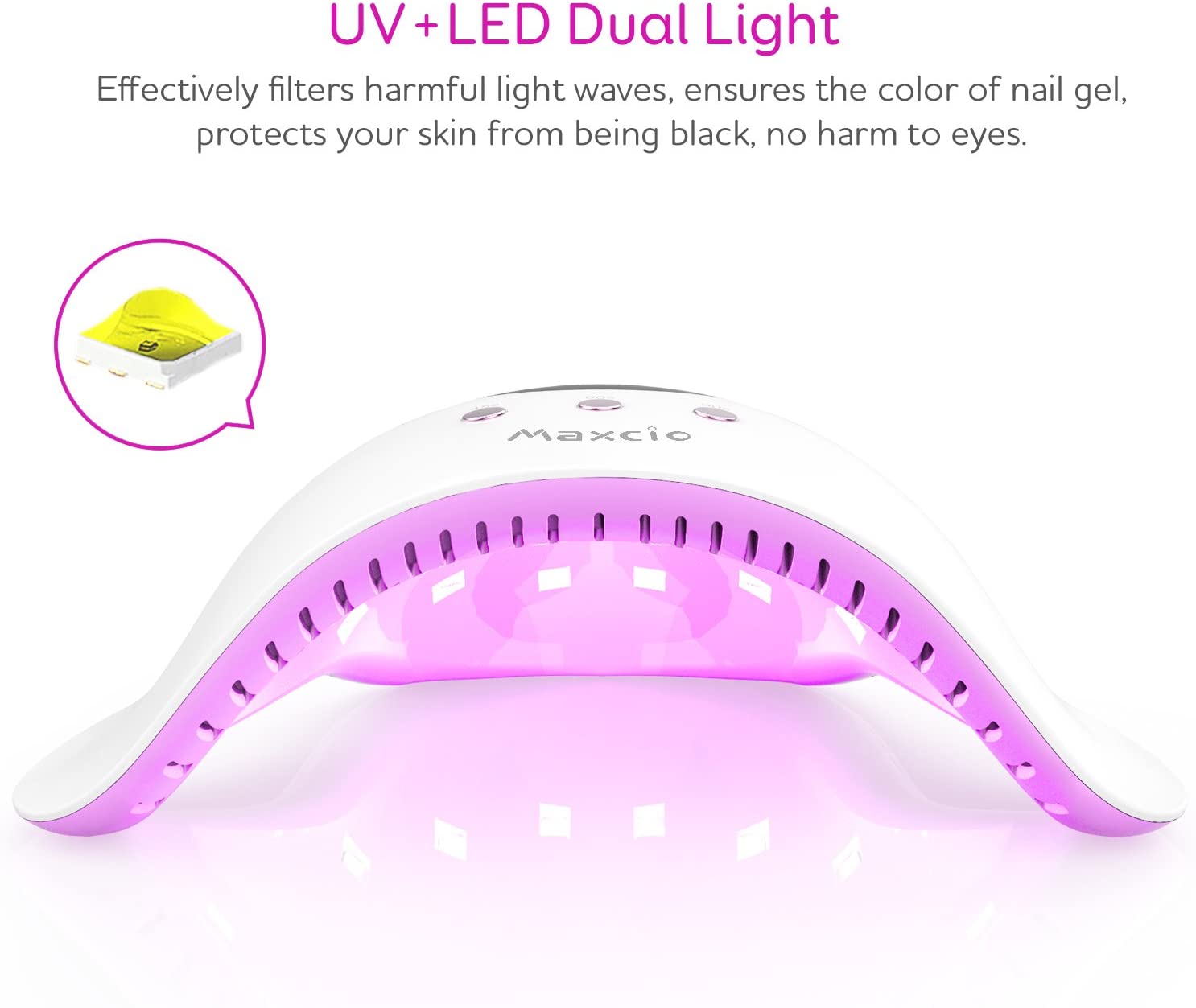 UV Nail Lamp, Maxcio UV LED Nail Dryer for Gel Polish with 30s/60s/90s Timer, LCD Display, Removable Base, USB Interface Power Supply and Smart Sensor (24W)
