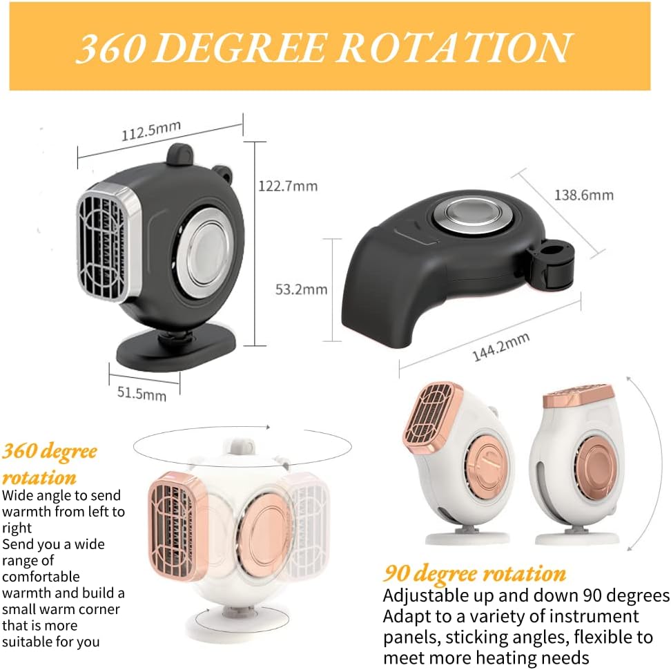 AIATE Car Heater, 2 in1 Fast Car Heater Defroster, 150W 12V Windshield De-Icers, Plug in Automobile Windscreen Fan with Suction Holder for All Cars Portable Electronic Car Heater Auto Heater