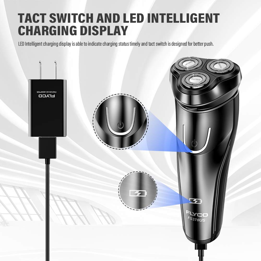 - Electric Rotary Shaver,FLYCO Electric Shaver Wet & Dry Rotary Shavers for Men 100% Waterproof Rotary Razor Three independently-Floating Heads with The Pop-up Trimmer (Black)