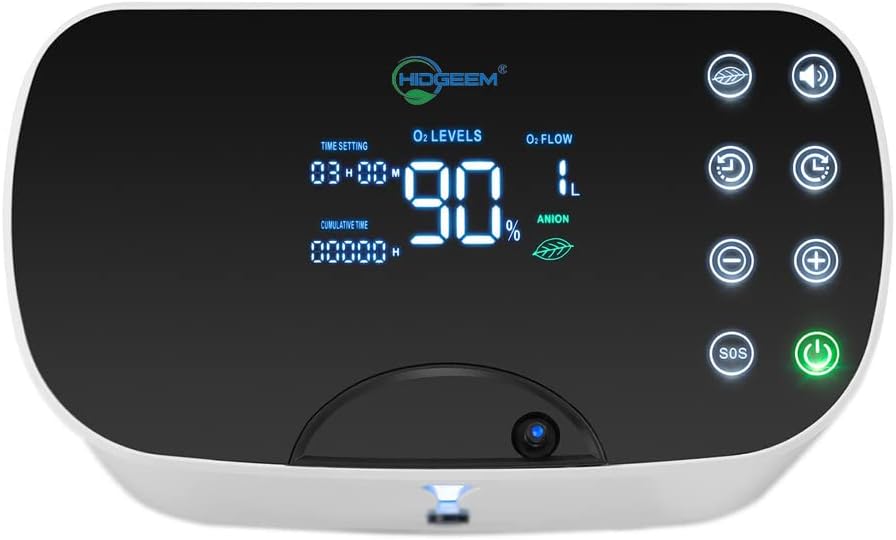 HIDGEEM Portable Oxygen Concentrator Generator, 1-6L/min Adjustable Oxygen Machine 93% ± 3% High Concentration Air Purification Machine