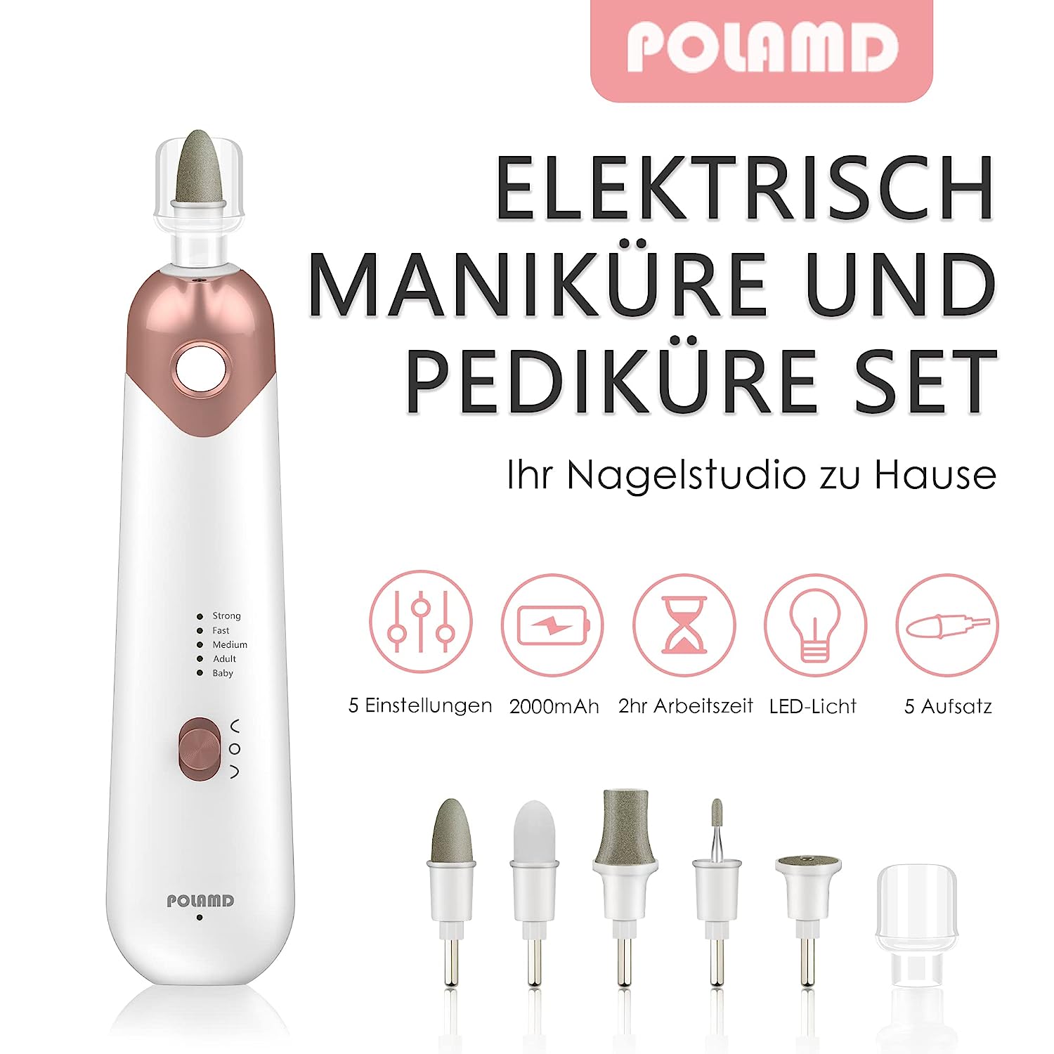 - POLAMD Manicure Set Electric Wireless Pedicure Set with Battery Rechargeable, Electric Nail File, LED Light, 5 Speed Levels