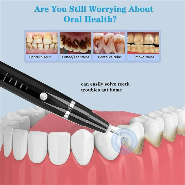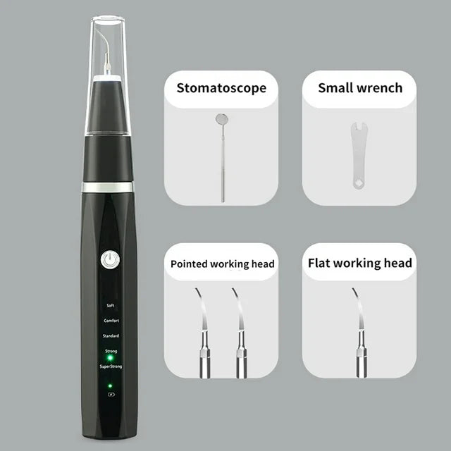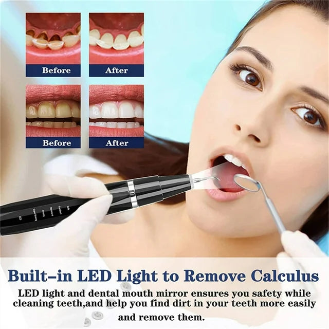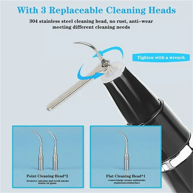 Rechargable Plaque Remover for Teeth Ultrasonic Dental Calculus Remover Teeth Cleaning Kit with LED Light, 5 Adjustable Modes, 3 Replaceable Clean Heads