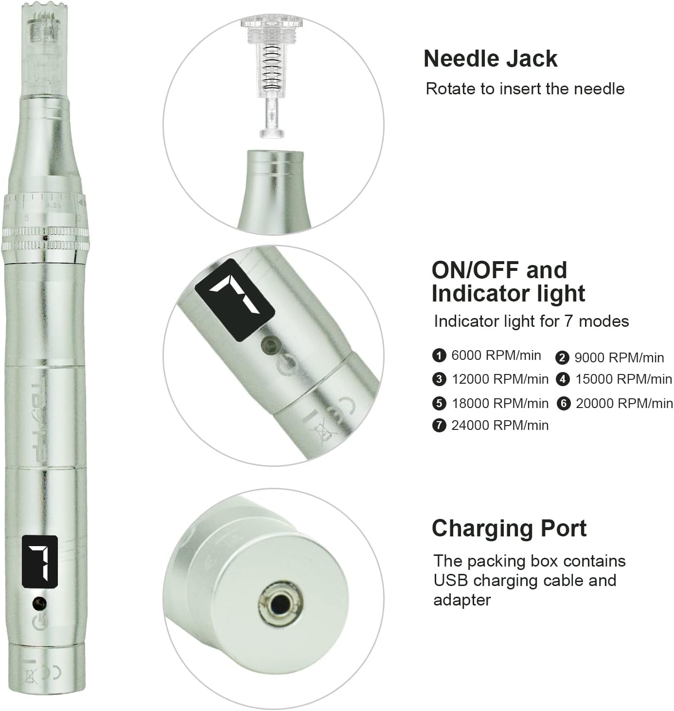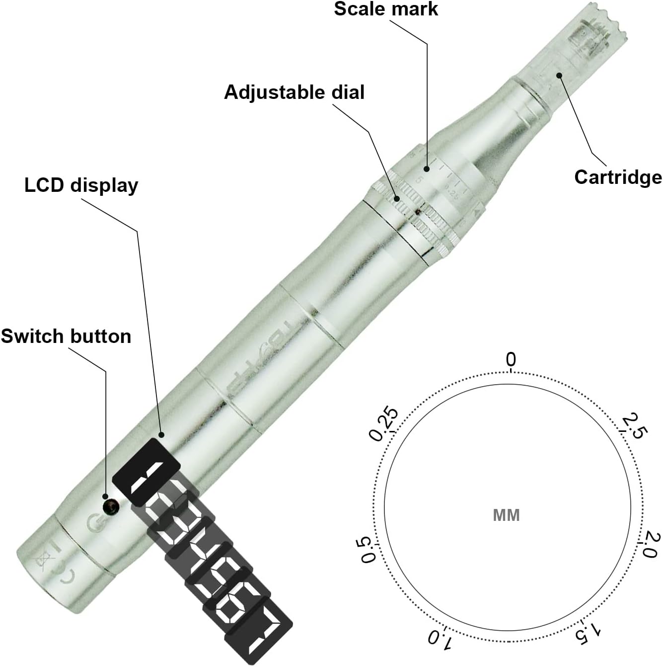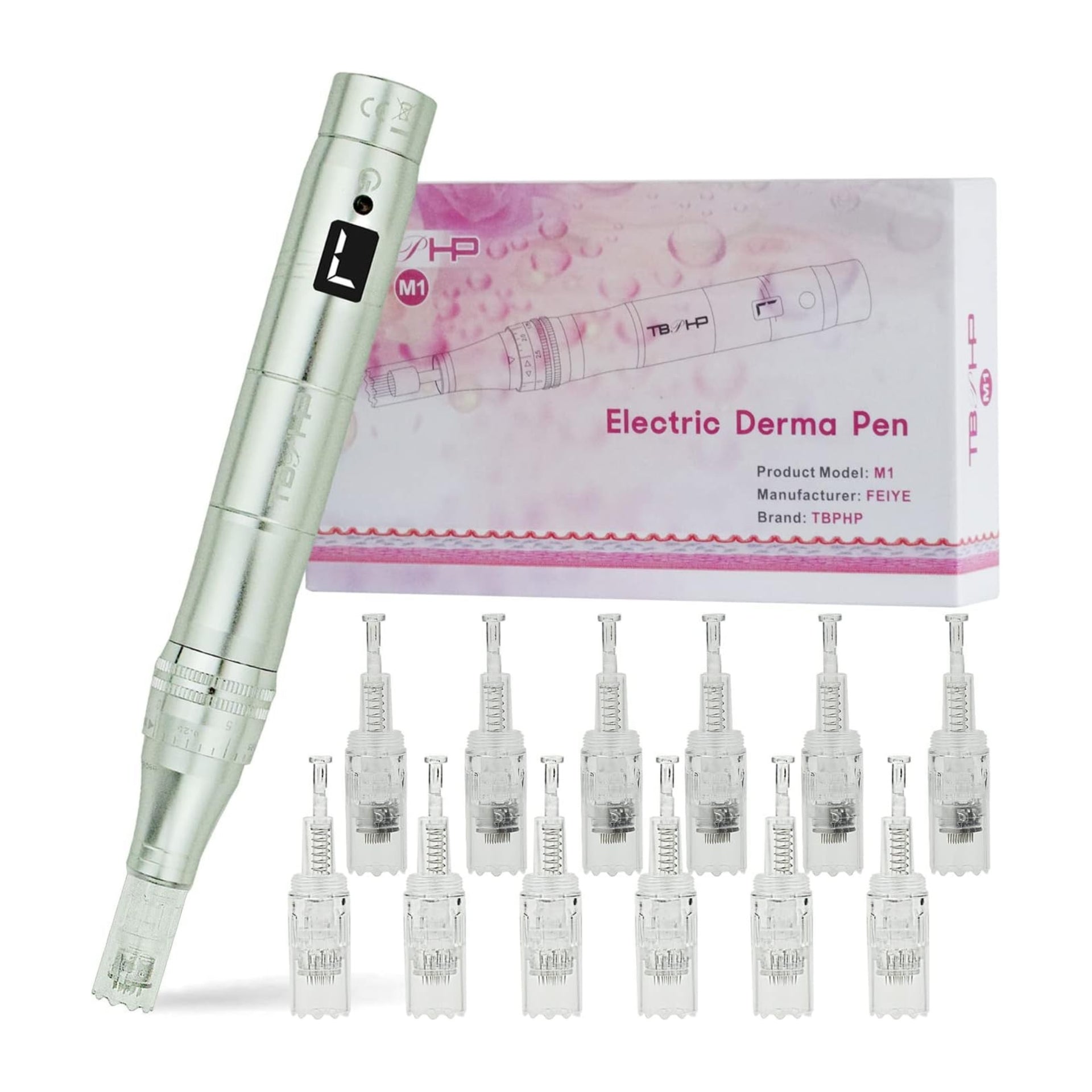 TBPHP Dermapen M1 Upgraded Electric Wireless Beauty Pen LCD Screen with 12 Replacement Cartridges (Silver)
