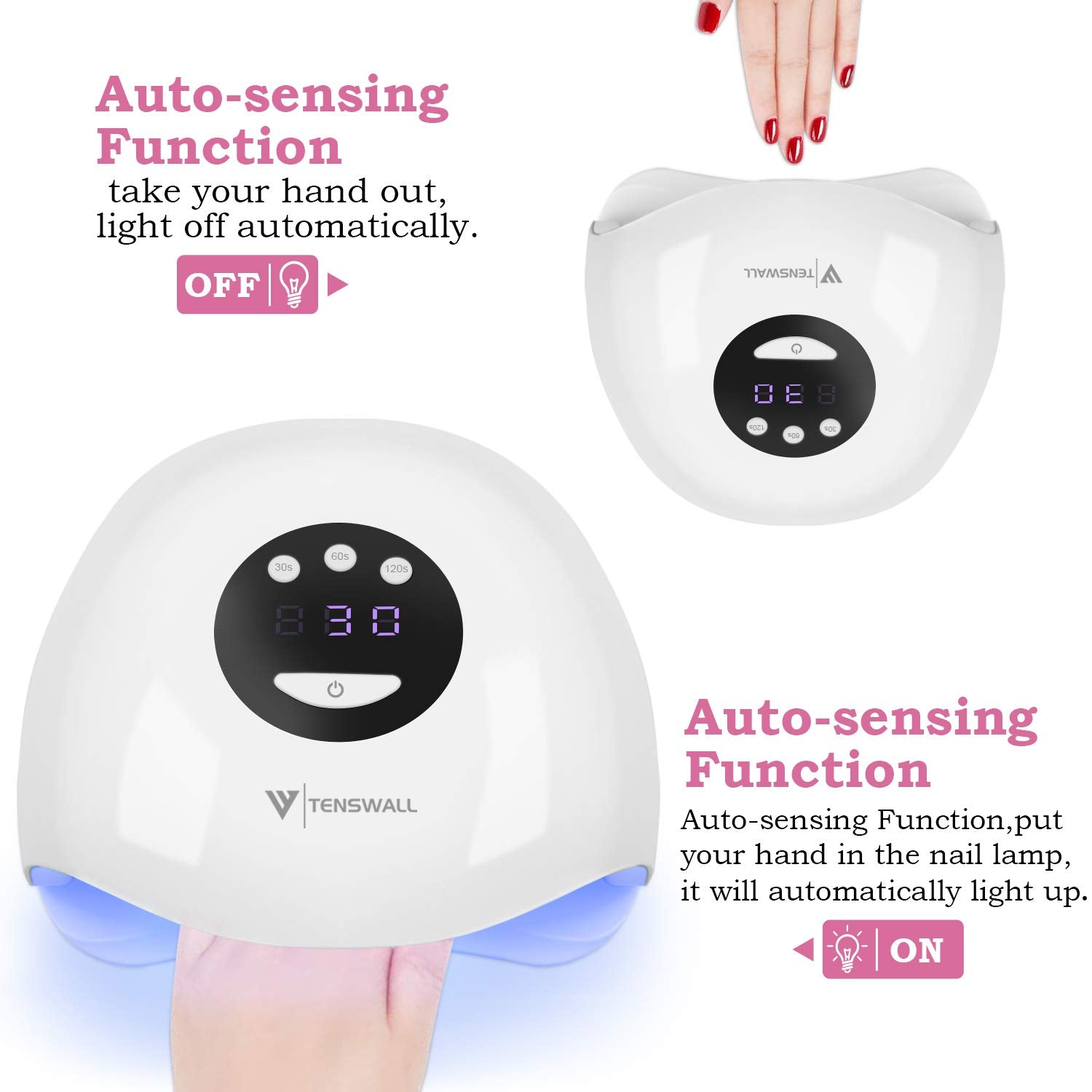 - 【Timer Setting and Auto-sensing Function】 It is adjustable in 3 timer settings of 30s/60s/120s. Auto-sensing Function, turn on the nail lamp and without pressing any buttons, put your hand in the nail lamp, it will automatically light up; take your hand out , light out automatically.