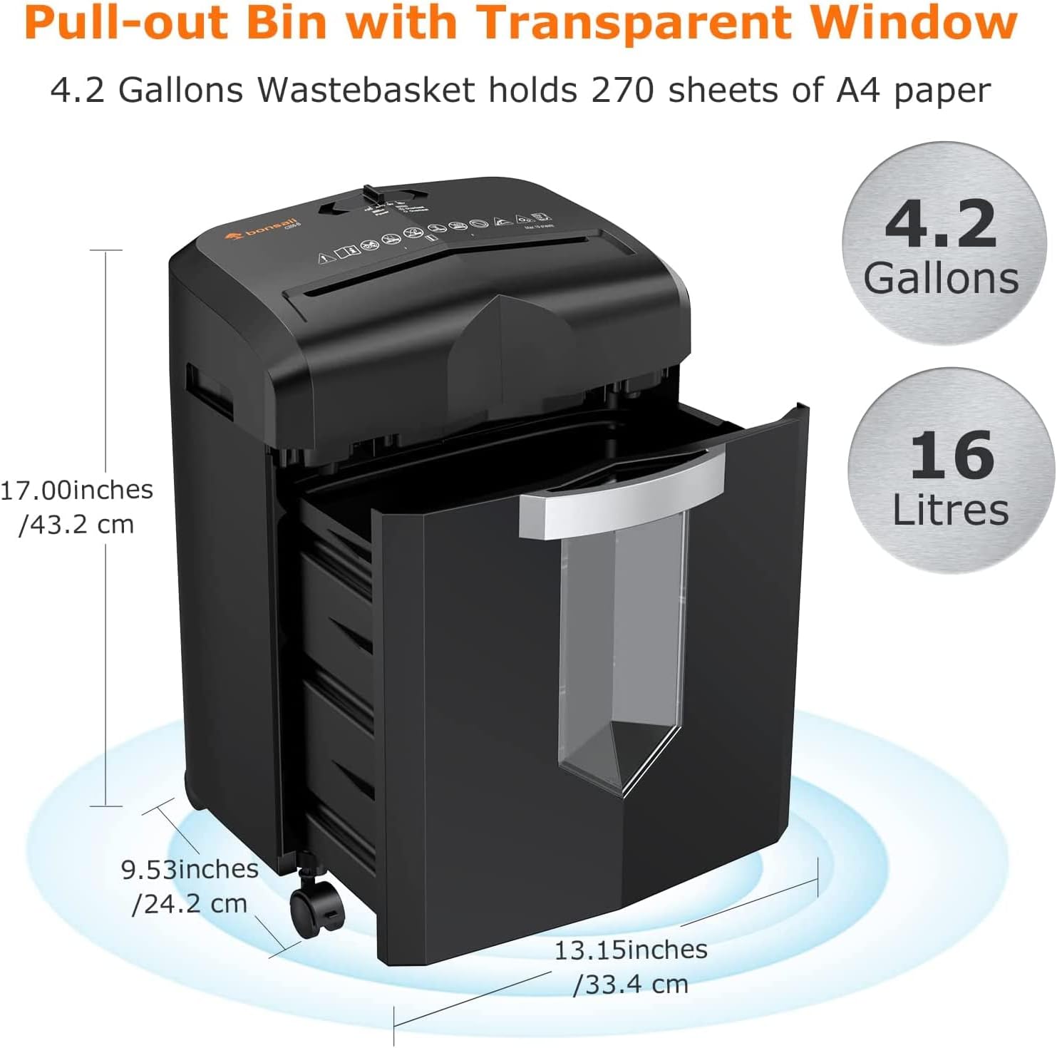 Bonsaii Micro Cut Paper Shredder, Heavy Duty Shredder for Home Office Runs for 30 Mins, 10-Sheet Super Shredders with 4 Casters & 16 Litres Pullout Bin, Shreds CD, Card, Mail, Staple and Clips(C266-B)
