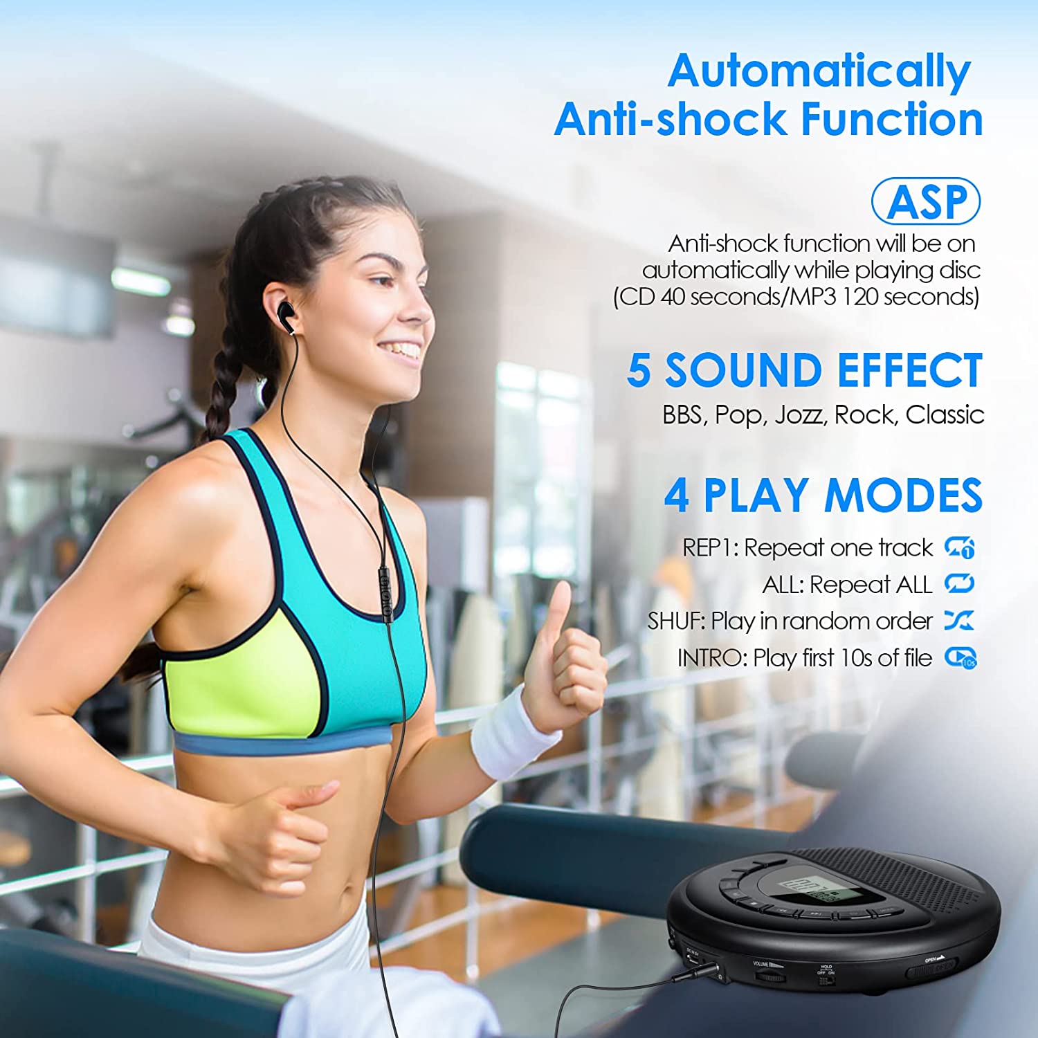 Gueray CD Player Portable Rechargeable with Speaker Dual Stereo 1400mAh CD Walkman CD Discman Backlight Battery Personal CD Player with Headphones Memory Function Anti-Skip Protection LCD Display