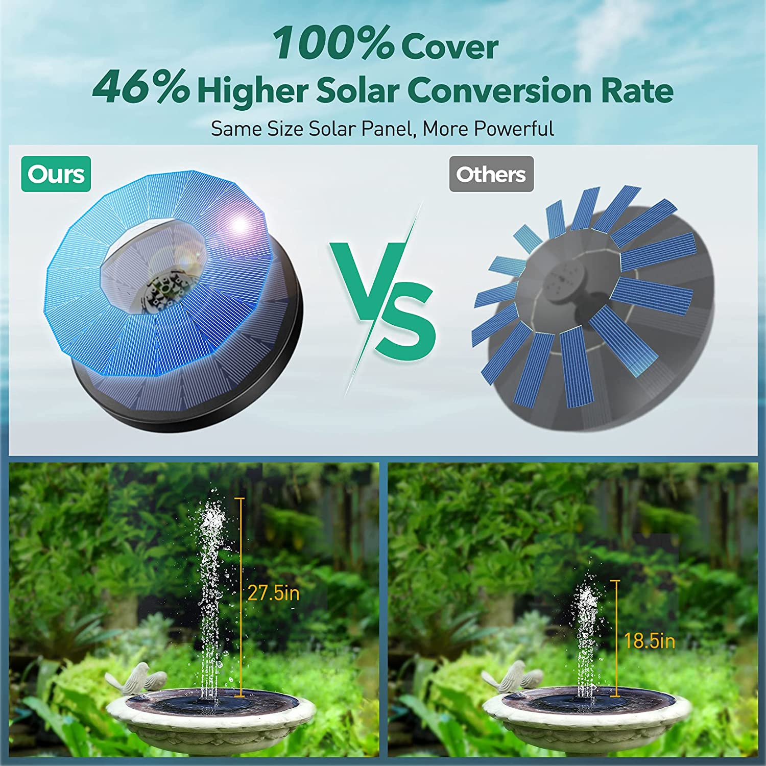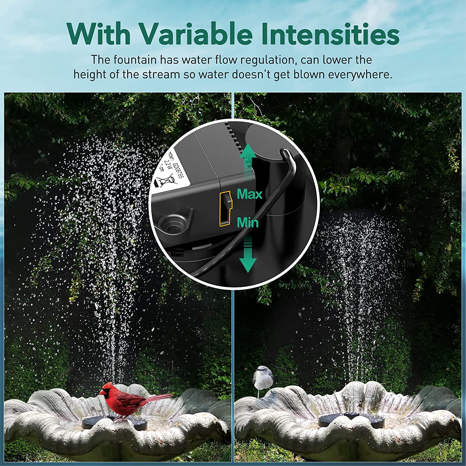 OKMEE Solar Fountain Upgraded 4-in-1 Nozzle, 2.2W Solar Powered Fountain Pump with 7 Water Styles, Solar Bird Bath Fountain for Bird Bath, Pond, Pool, Fish Tank, Aquarium and Garden, Black