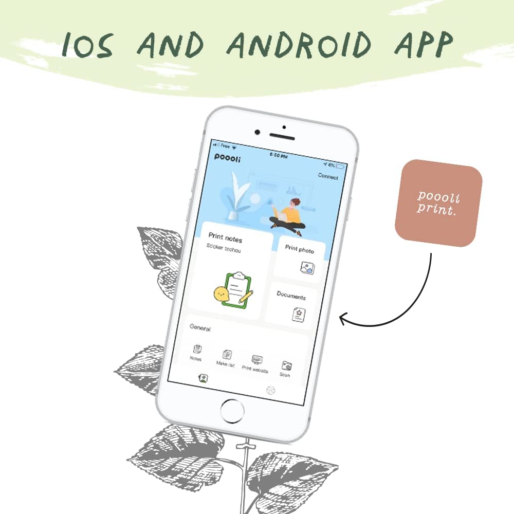 - Poooliprint L1 Inkless Pocket Printer - Mini Phone Bluetooth Portable Poooli Thermal Printer for iOS + Android Print Sticky Photos, Labels, Notes, Lists for Journal, Pink