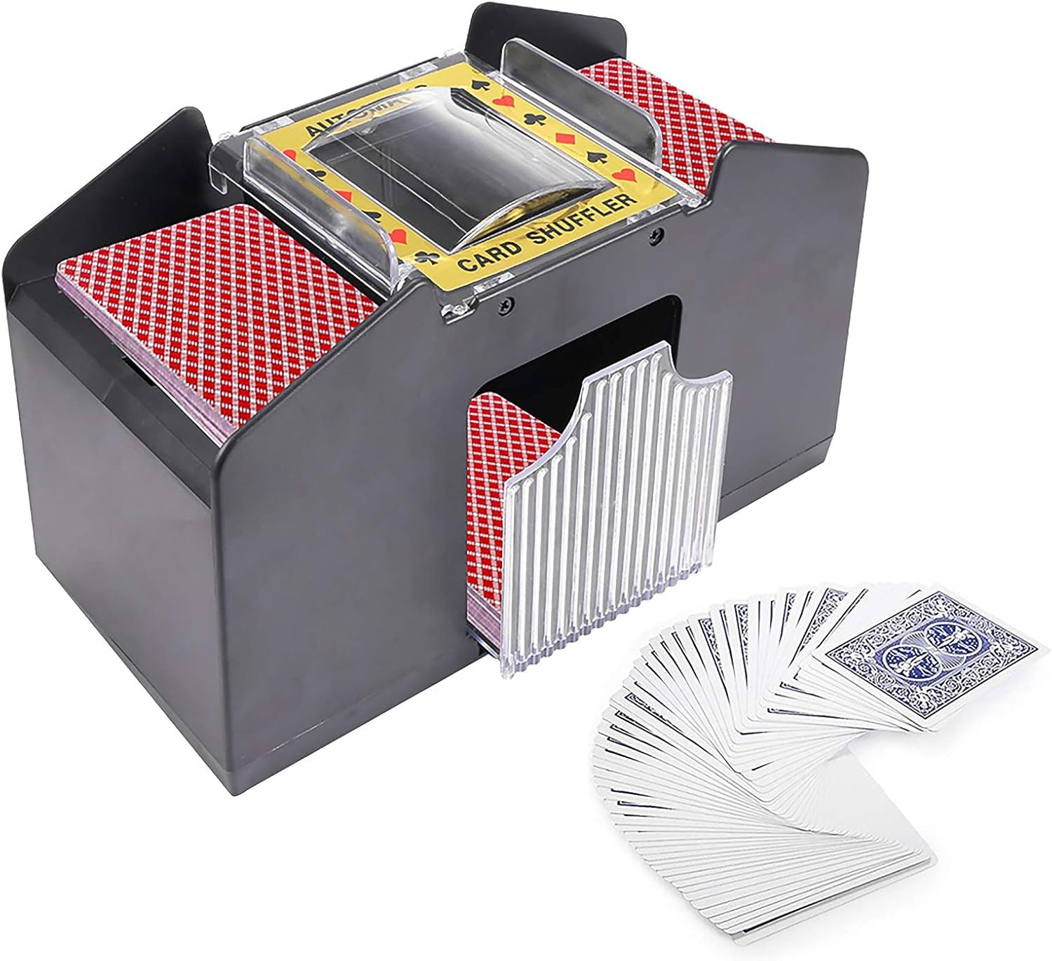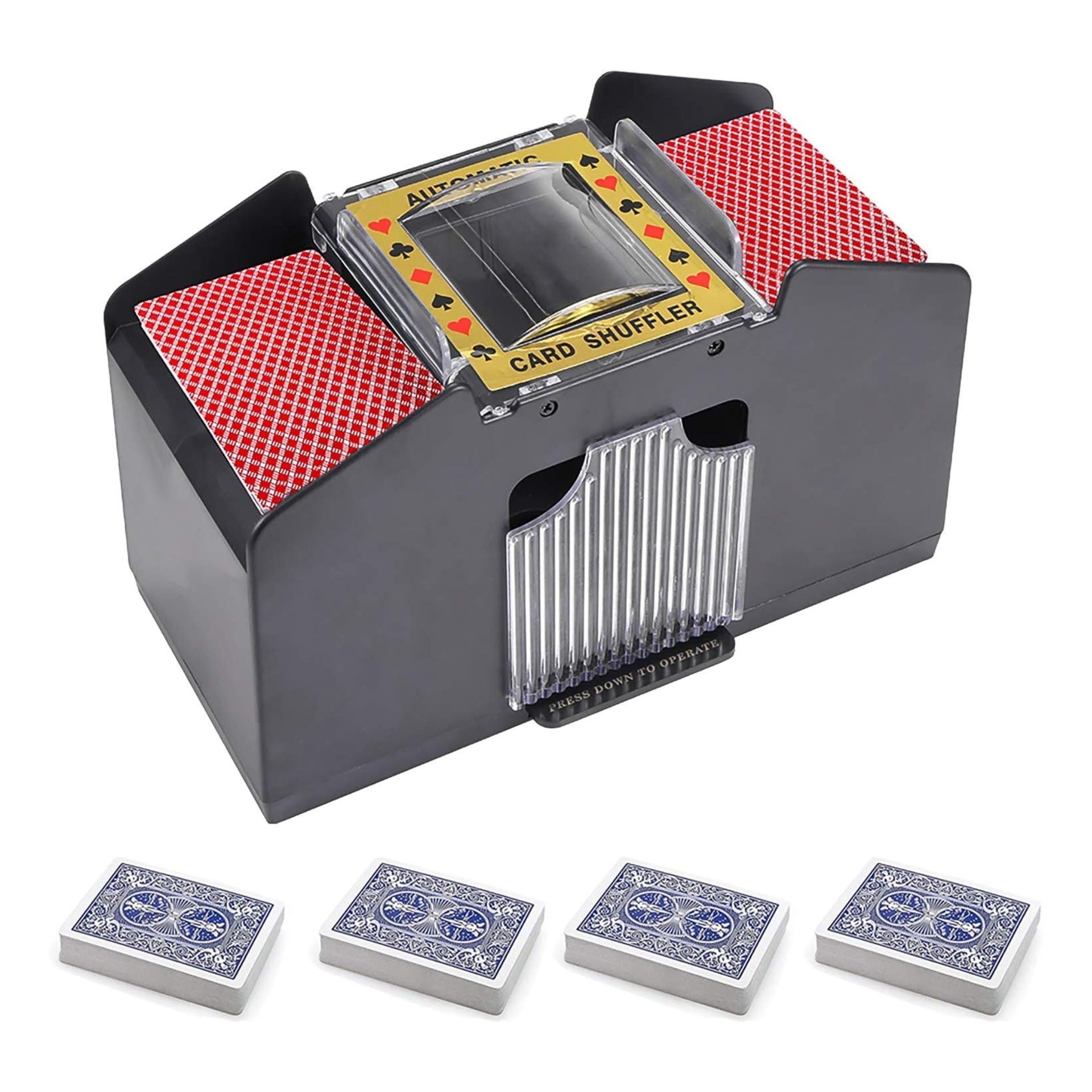 Party card game tool: our product mixes 4 sets of playing cards at the same time. The electric card machine can completely free your hands and is the ideal tool for lovers of playing cards. You can take it with you when you go to work, family reunions or camping, and let it automatically shuffle the cards for you.