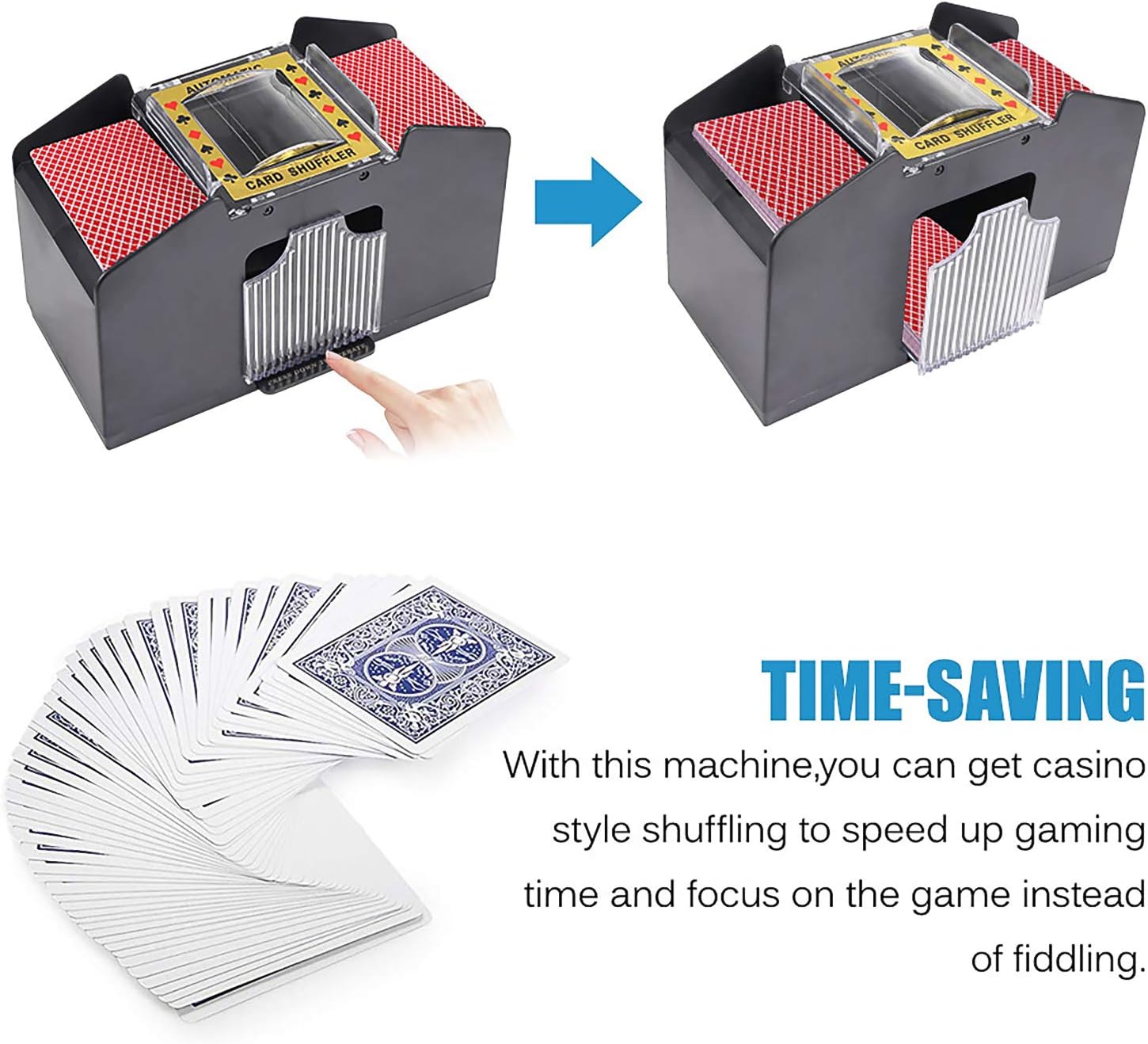 - Quick mixing, save time: with this automatic mixer, you can save time, which allows you to play cards more efficiently, speed up playing time and focus on the game instead of mixing manually.
