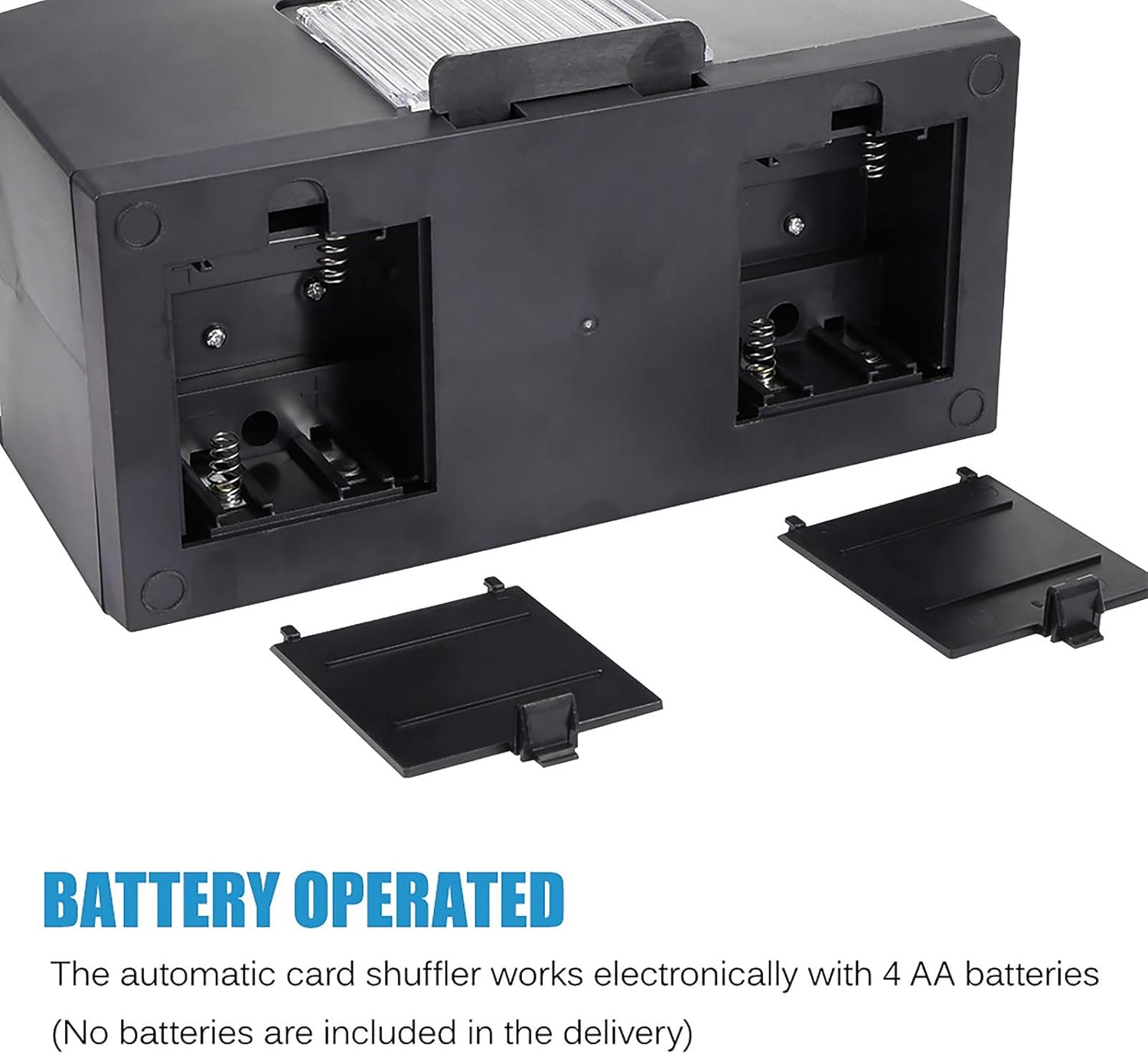 - Simple and easy to use: the automatic mixer is powered by 4 AA batteries (not included), one-button operation, which is easier and less labor-intensive than manual mixing. You can put cards in the compartments, they are mixed and come from one compartment, it is automatically mixed at the touch of a button, very easy and convenient to use.