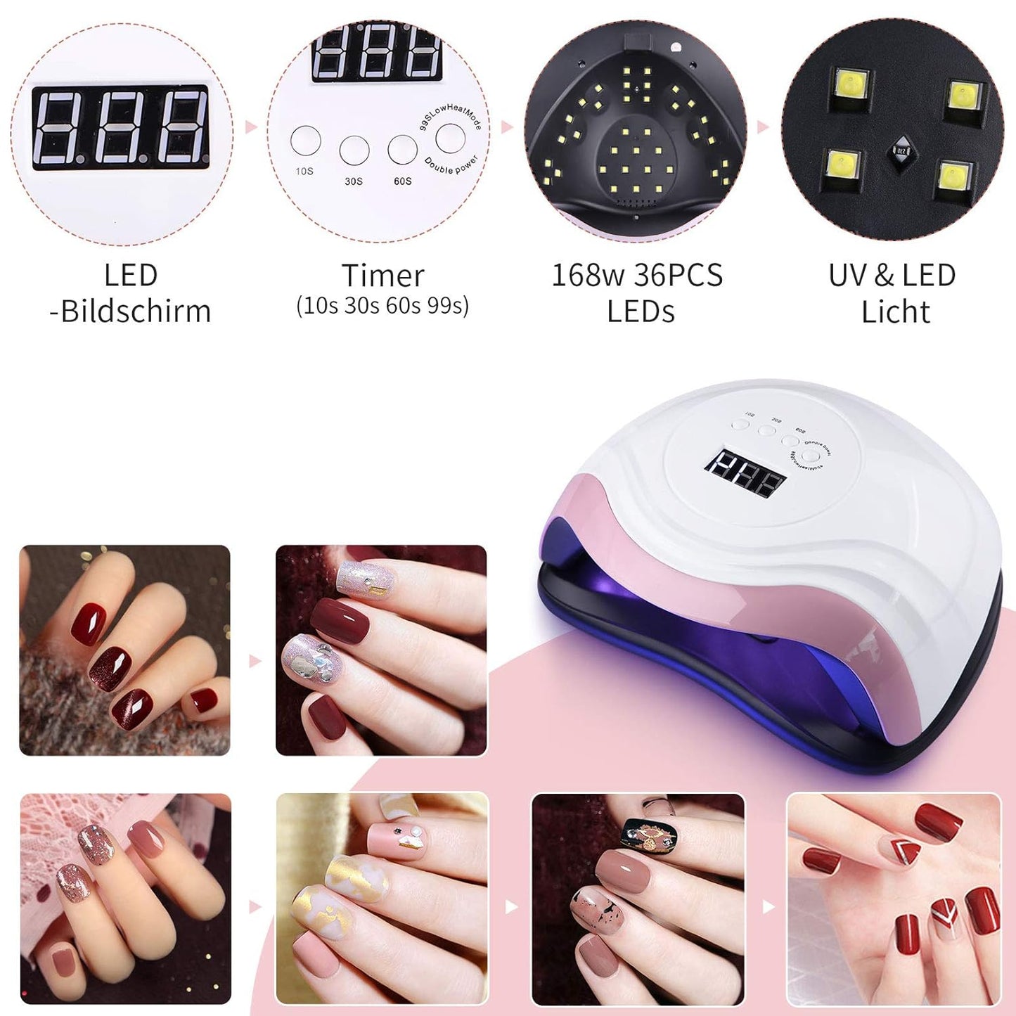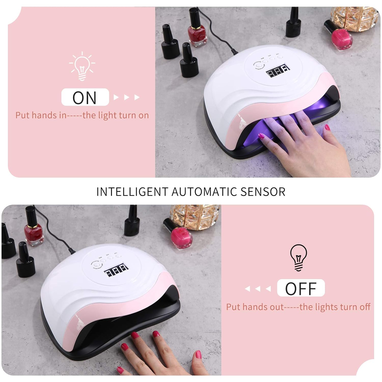 - Aokyom 168 W Nail Dryer Lamp, UV LED Lamp for Nails, Professional Nail Lamp with 10/30/60/99s Timer LCD Display and Smart Sensor for Finger/Toenail and for All Gel Nail Polish, Gel Nails, Shellac
