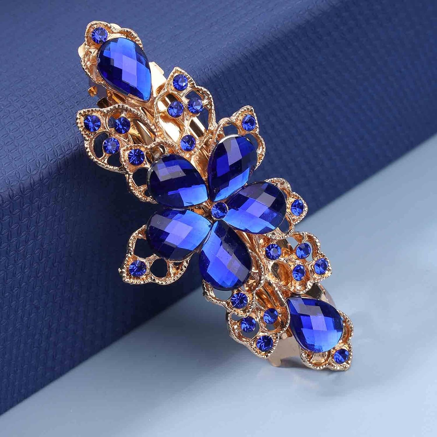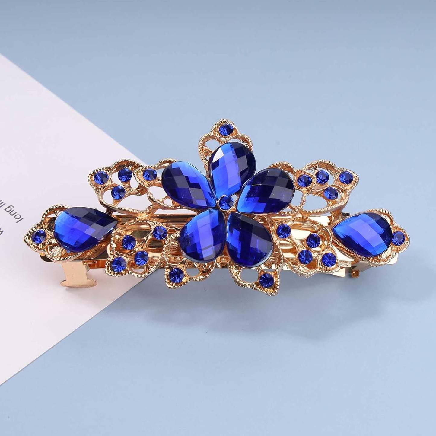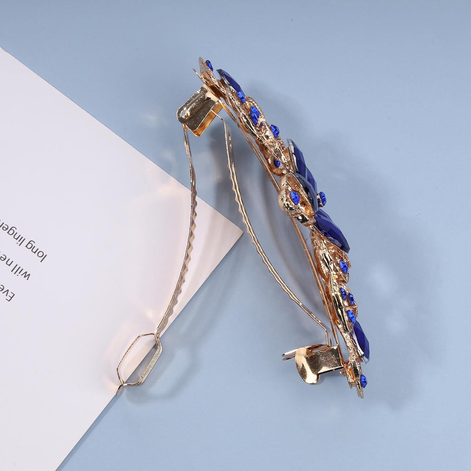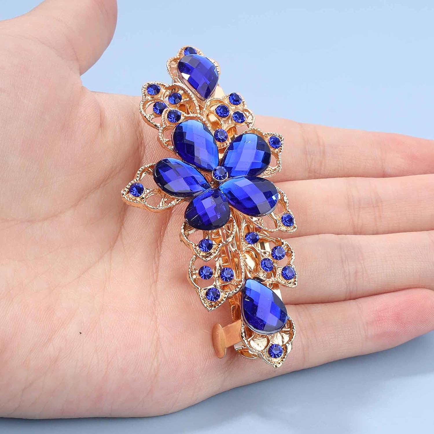 Yheakne Rhinestone Bridal Hair Clip Barrette Blue Crystal Wedding Headpieces Shining Headwear Crystal Hair Barrette Comb Bridal Hair Accessories for Women and Girls (Blue)