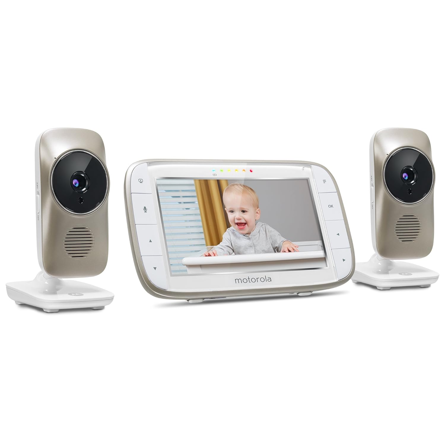 - Motorola MBP845 5" Video Baby Monitor with Wi-Fi Viewing, 2 Cameras, Digital Zoom, Two-Way Audio, and Room Temperature Display