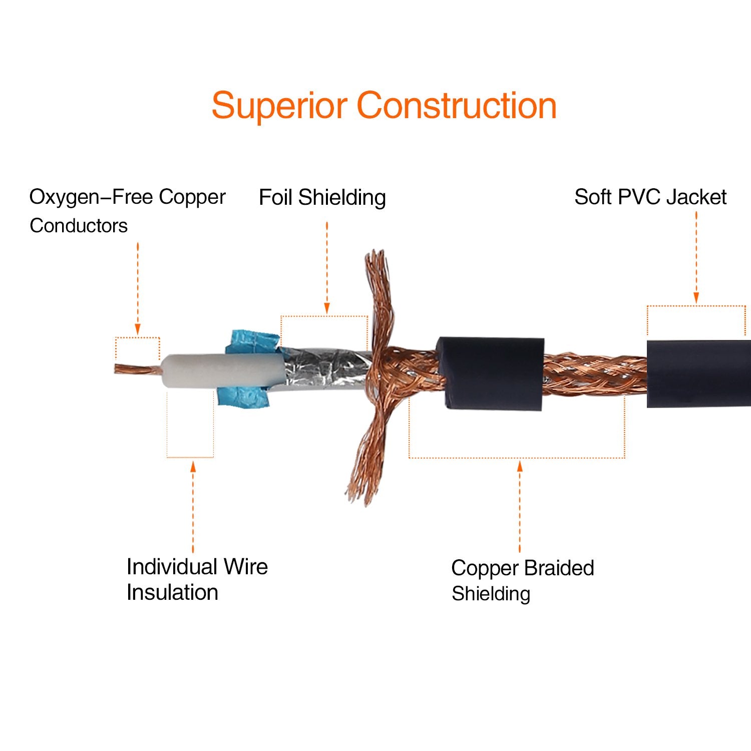 - Flexible PVC Jacket, Top quality and made by environment-friendly material, Nickel-plated Connectors Provide Reliable Contact, Rubber Strain Relief For Extended Durability.
